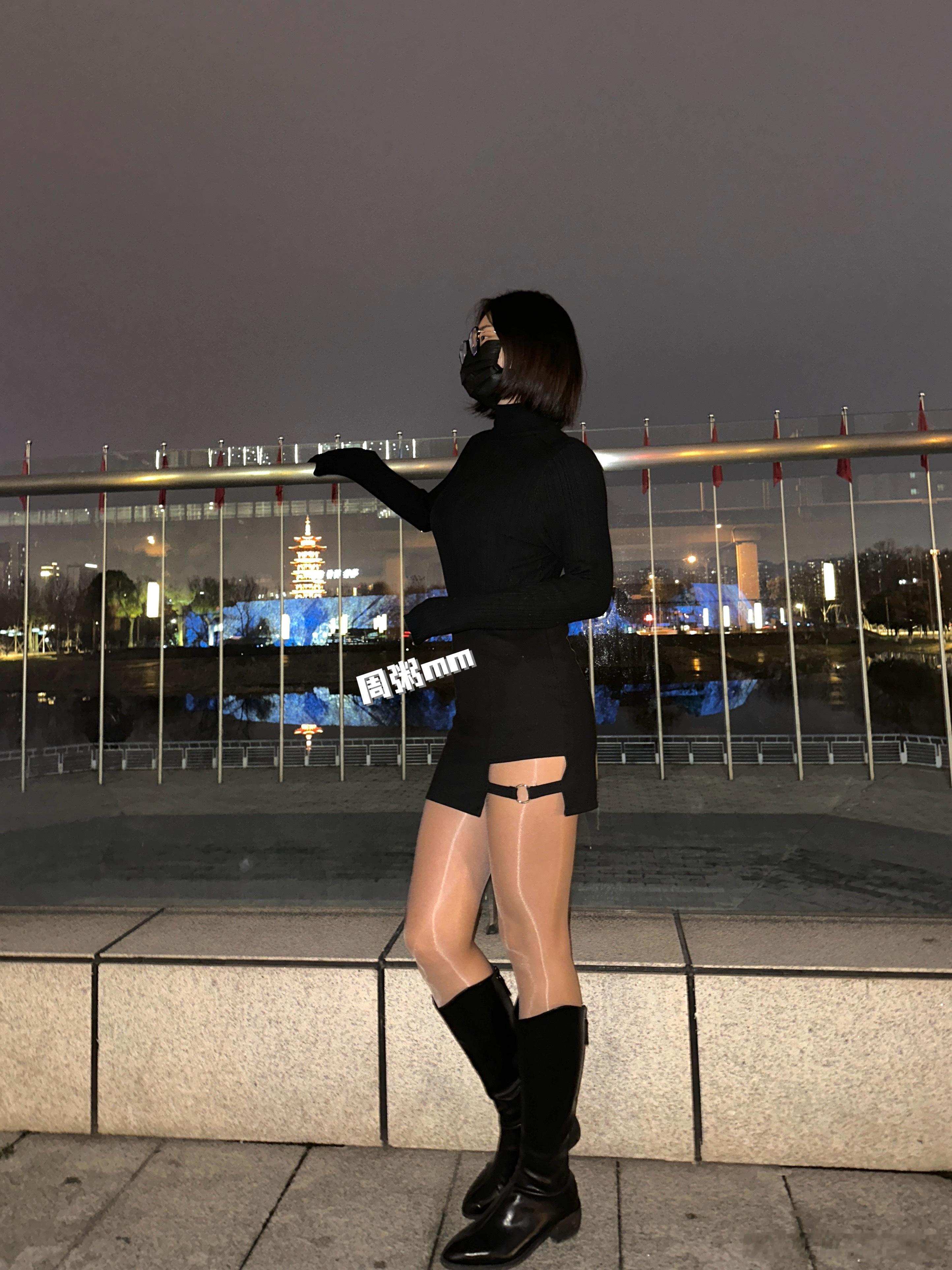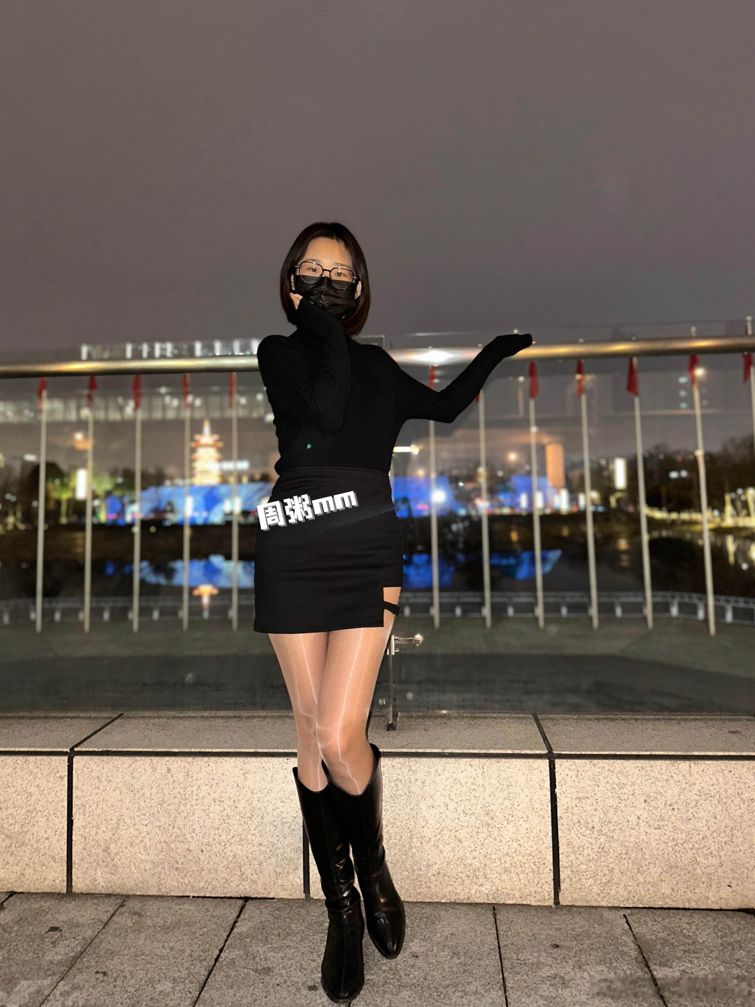黄英🖤跨年夜黑丝皮靴造型