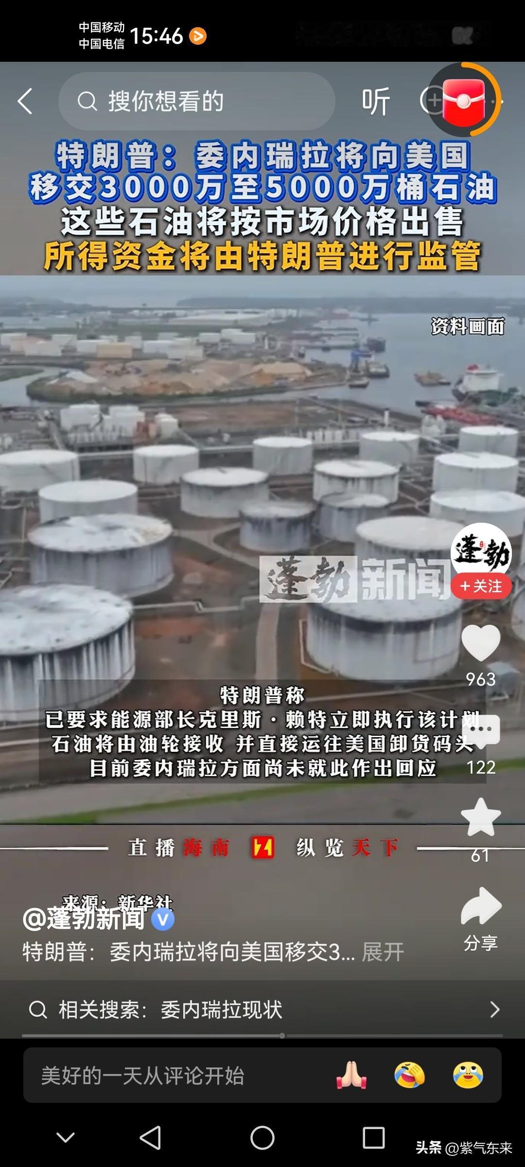 特朗普这次直接摊牌了,就是为了石油来的! 特朗普宣布:委内瑞拉过渡政府将向美国移交3000万桶和5000万桶原油石油,这些石油移将按市场价出售,所得资金由特朗普监管! 倒不如直接说这些资金就是特朗普的! 特朗普这番话跟明抢没区别,抓了马杜罗直接以莫须有的罪名开始起诉,这简直就是霸权行径和强盗逻辑! 特朗普这么拽那是实力象征,在全球没有哪一个国家能跟美国抗衡,这就导致特朗普有恃无恐,狂妄至极! 目前特朗普团队正在策划更大的阴谋,想把格陵兰岛占为己有,不排除使用军事手段,言外之意势在必得!格陵兰岛的军事实力还不如委内瑞拉,对美国来说轻而易举,只不过目前需要找一个合理的理由和手段!委内瑞拉石油战
