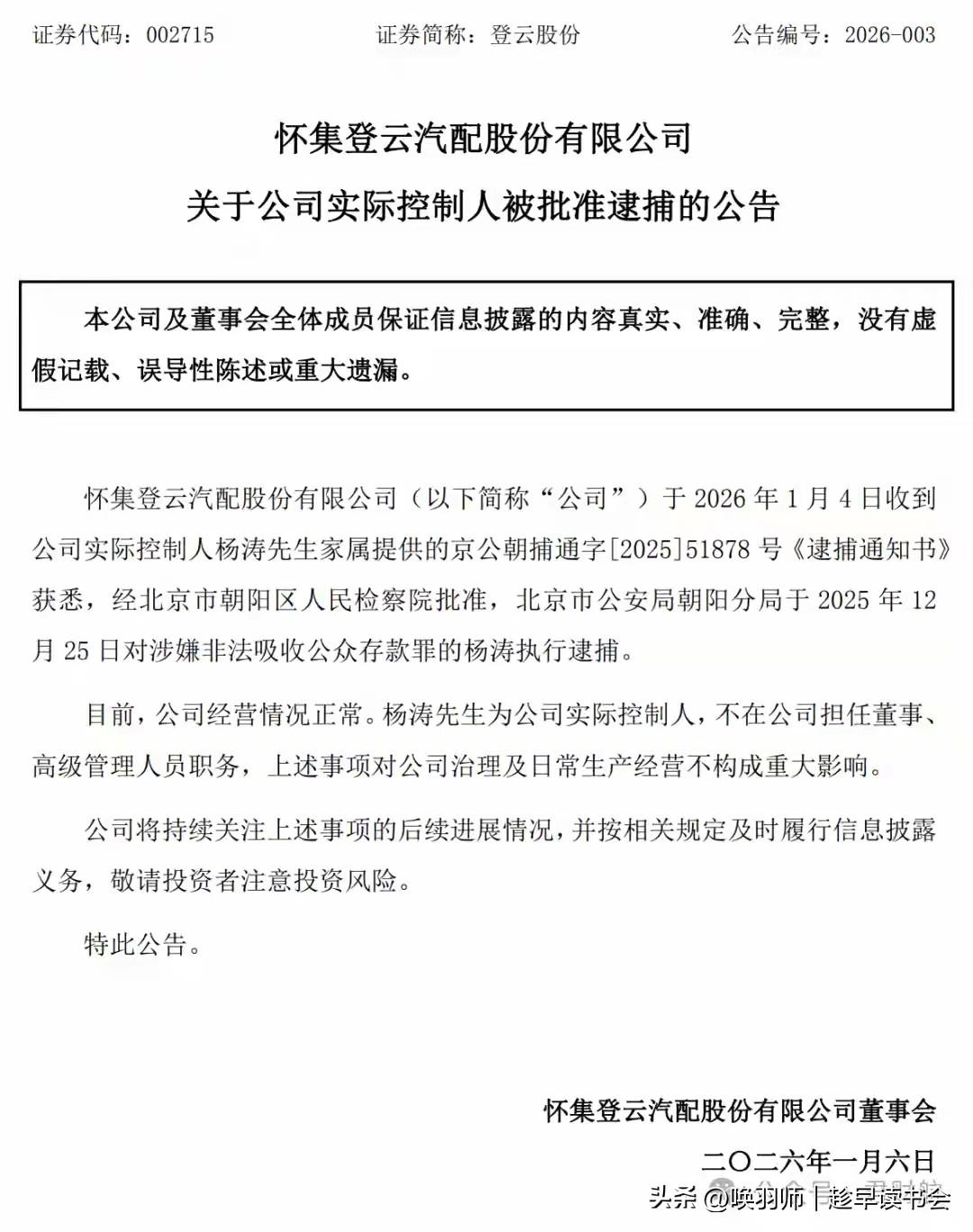 2026年1月,上市公司登云股份实控人杨涛因涉嫌非法吸收公众存款罪被捕,其背后坐拥千亿金矿资源与多家金融牌照的 “益科系” 资本帝国陷入危机。 事件引发连锁反应:控股股东近半数股份被司法冻结,可能导致登云股份控制权变更;公司股价大跌,2025年前三季度业绩已由盈转亏。 杨涛作为系族二代,通过2019年收购入主登云股份。其掌控的 “益科系” 横跨矿业与金融,但近年持续收缩,核心金融资产联储证券经营承压且股权被稀释。 此案暴露了部分民营资本系族 “实业+金融” 混业模式下的治理风险与风险传导隐患。它警示企业的长远发展必须依靠合规运营与健康治理,而非复杂的资本运作与个人控制。事件也凸显了资本市场强化穿透式监管、保护中小投资者的重要性。乐云公司 龙登云 开云集团股价 贵州云股东 登海公司 凌空公司 新云集团 云股份 骄杨公司 云威公司 昱云公司 泰麟公司 长云公司 东隆公司 杨翔集团
