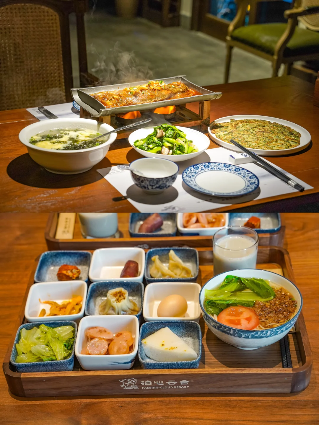 强烈安利民宿自带的 “泊心肴”民国风花园餐厅!我们点了招牌臭鳜鱼双人套餐,分量十足,味道地道,吃得超满足,完全不用为找吃的费心。