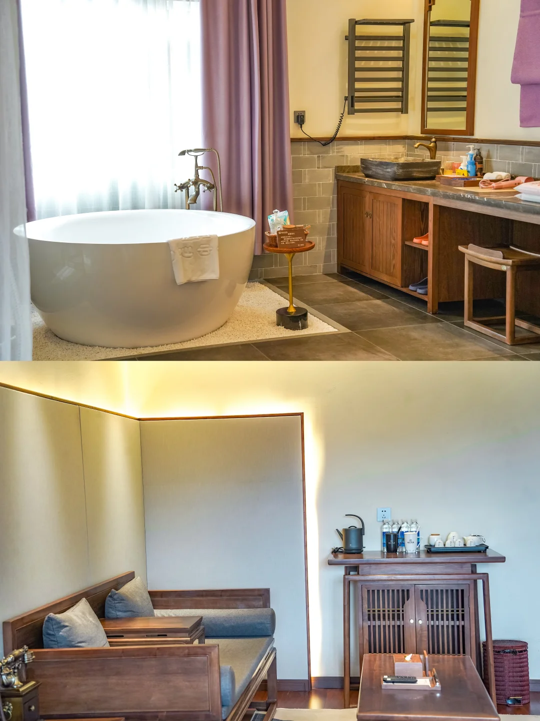 🛏️ 沉浸式入住:细节满分!房间既保留了古宅的典雅框架,又注入了满满的舒适温度。品质体现在每个细节:离店时可以带走的桃木梳、亚麻拖鞋,以及亲肤的新疆长绒棉毛巾浴巾,这种“专属带走”的仪式感太棒了!