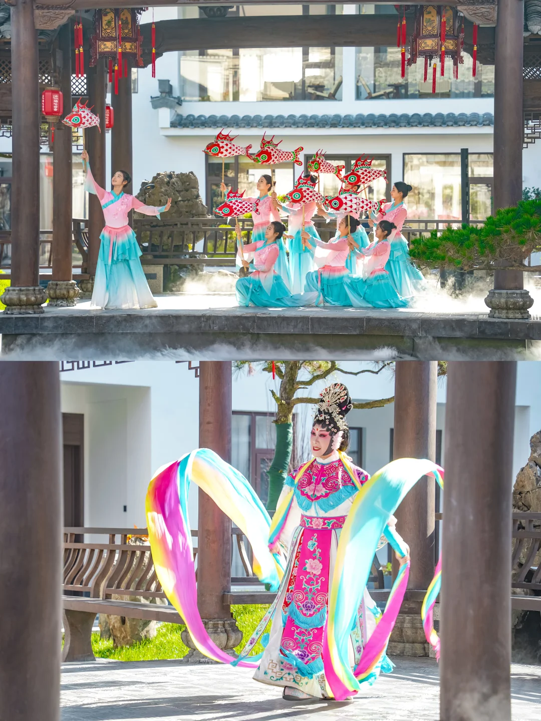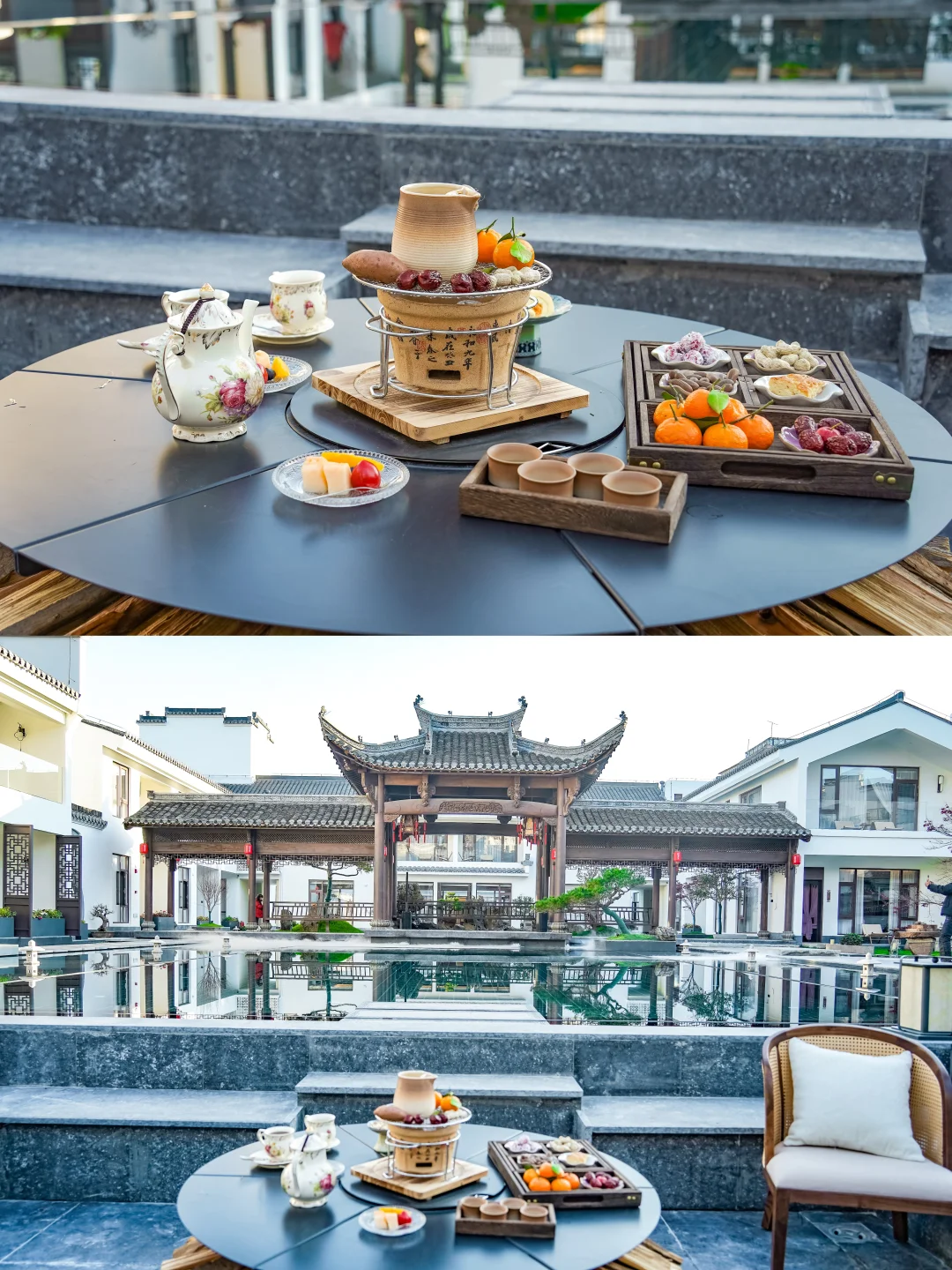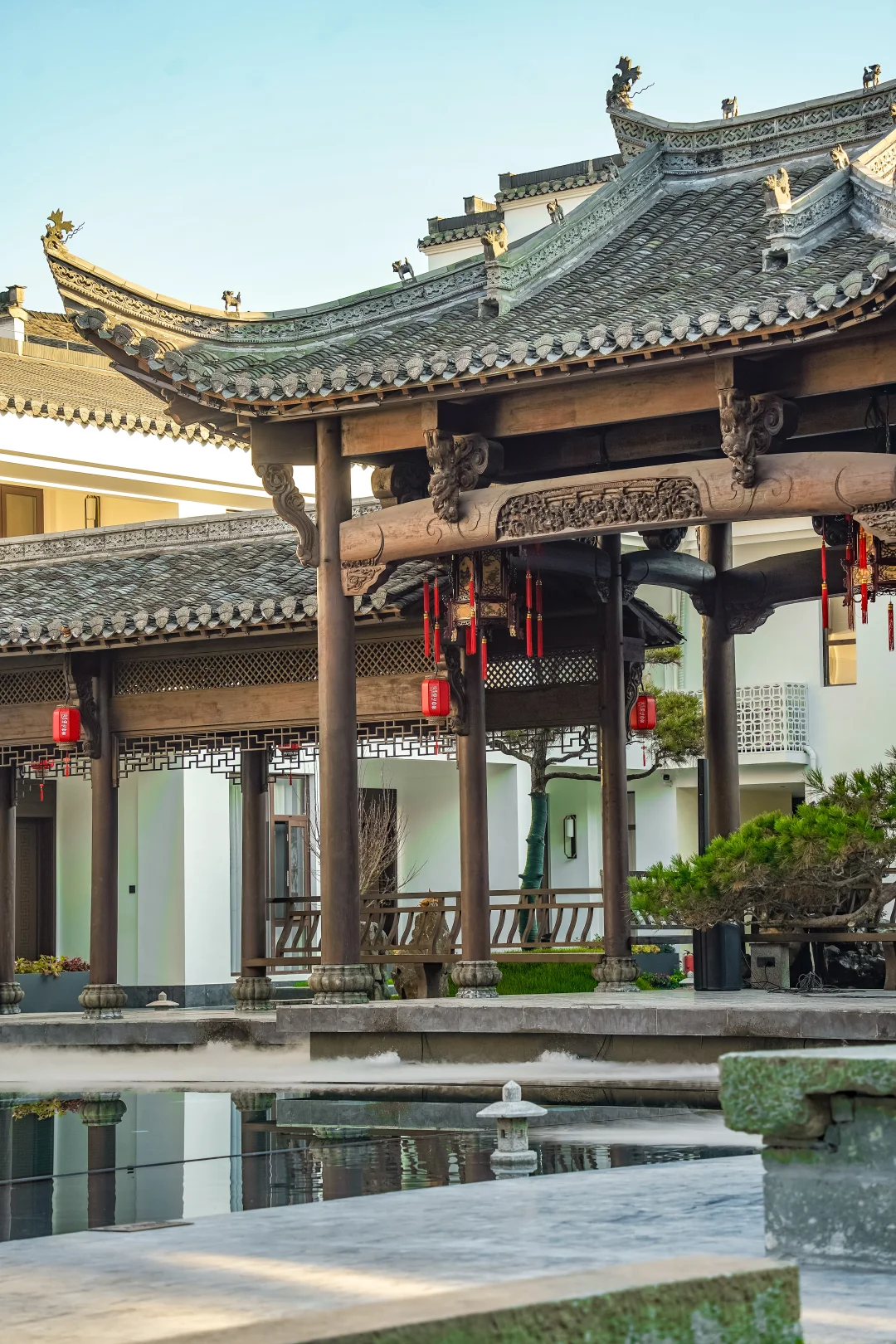 环境优美:公区是精致的徽派美学,星空泳池、庭院回廊,怎么拍都出片。玩累了回来,本身就是在享受风景。