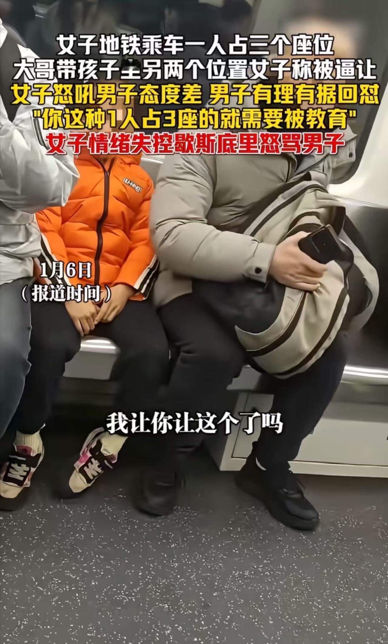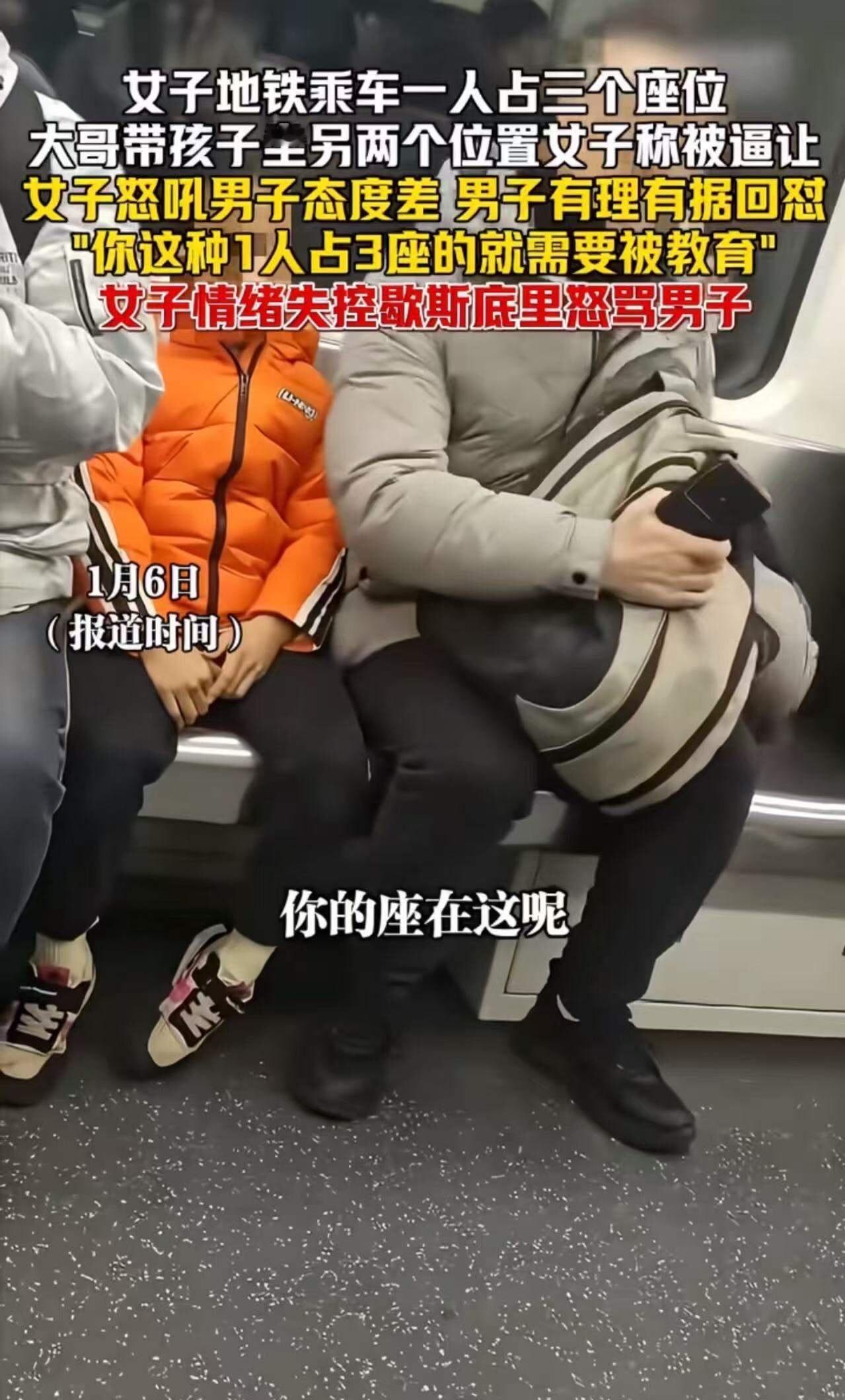 “第一次见男人吵赢女人的!”女子坐地铁一人占3个座位,大哥带孩子挤进去,女子觉得