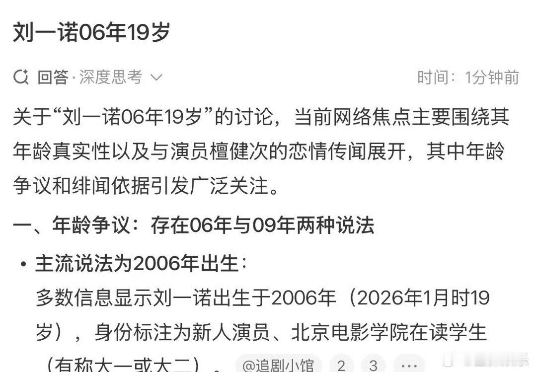 檀健次刘一诺差16岁综合争议版 这瓜信息量也太大了…先是扒出同款地毯、衬衫,还有“命好”的暧昧文案,女方住址也被指与男方高度重合。但粉丝澄清地毯是道具、礼物是妈妈送的,证据链存疑。更关键的是,女方年龄在06和09年间摇摆不定,若未成年性质就变了。双方至今沉默,只剩下网友在“自由恋爱”和“阅历剥削”间激烈辩论。咱就是说,等一个工作室的回应不过分吧?刘一诺06年19岁