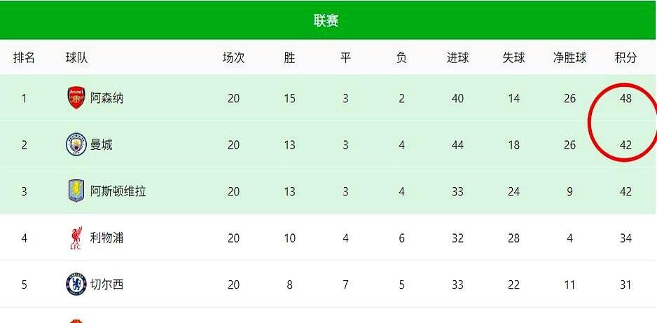 领先6分了,阿森纳这回不会再掉链子了吧? 联赛踢了20轮,48分。直接甩开后面