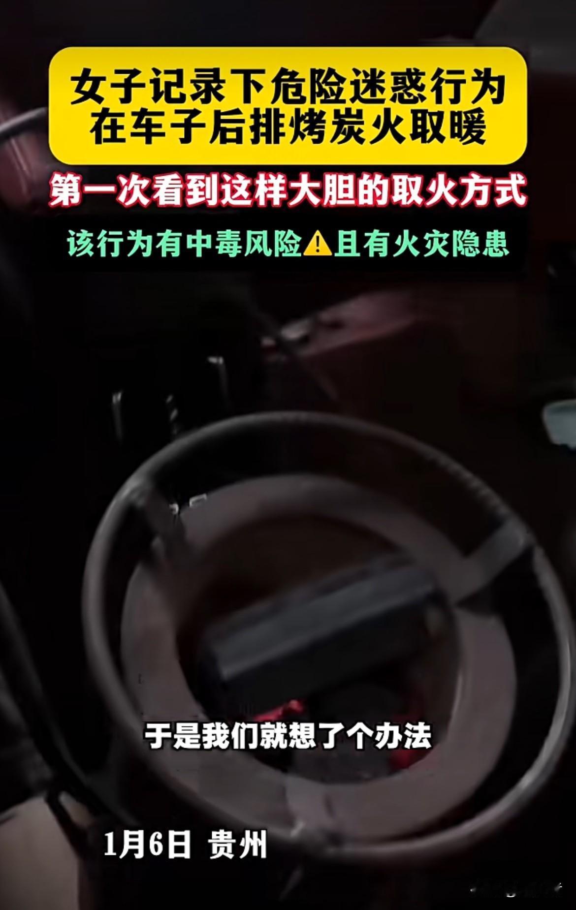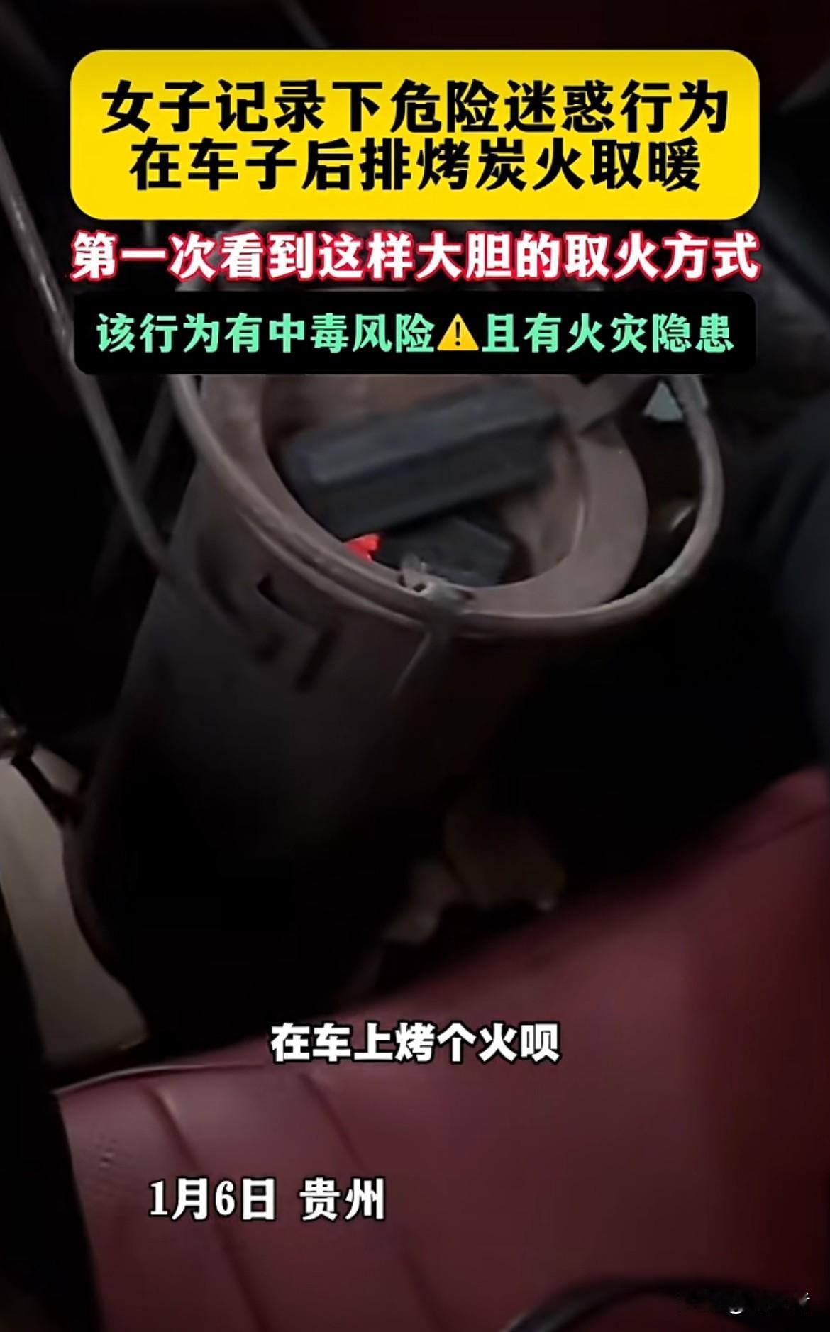 女子居然在车上烧碳取暖,真的太无知,太危险了!冬天寒冷,但用烧炭这种方式在封闭的车内取暖,简直是把自己往鬼门关送。大家可一定要吸取教训,冬天取暖安全第一,可别犯这种低级又致命的错误。