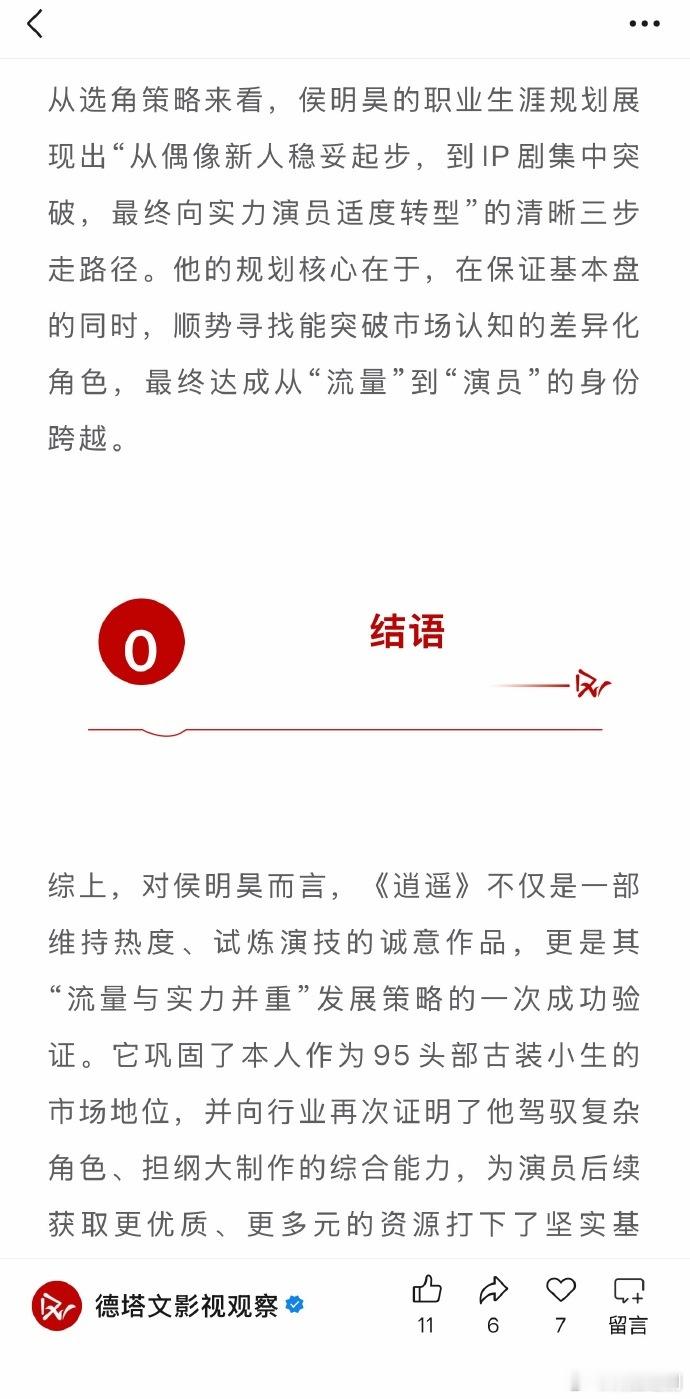 德塔文发文:95实力小生侯明昊“向上兼容”,落地演绎《逍遥》三世情缘 ;三世情缘契合式演技,侯明昊有效传递“逍遥”真谛;“向上兼容”试炼演技,夯实演员核心竞争力 。