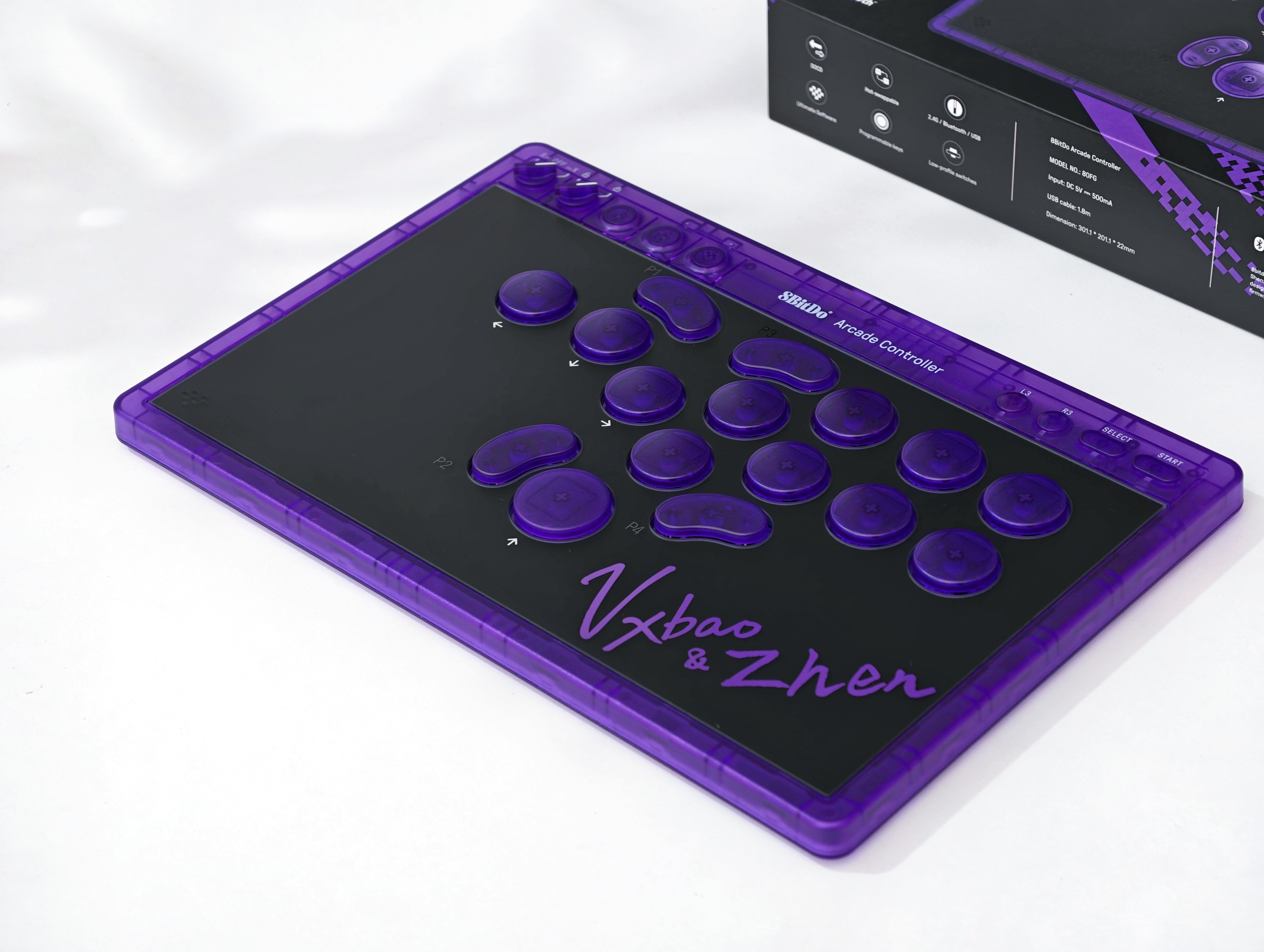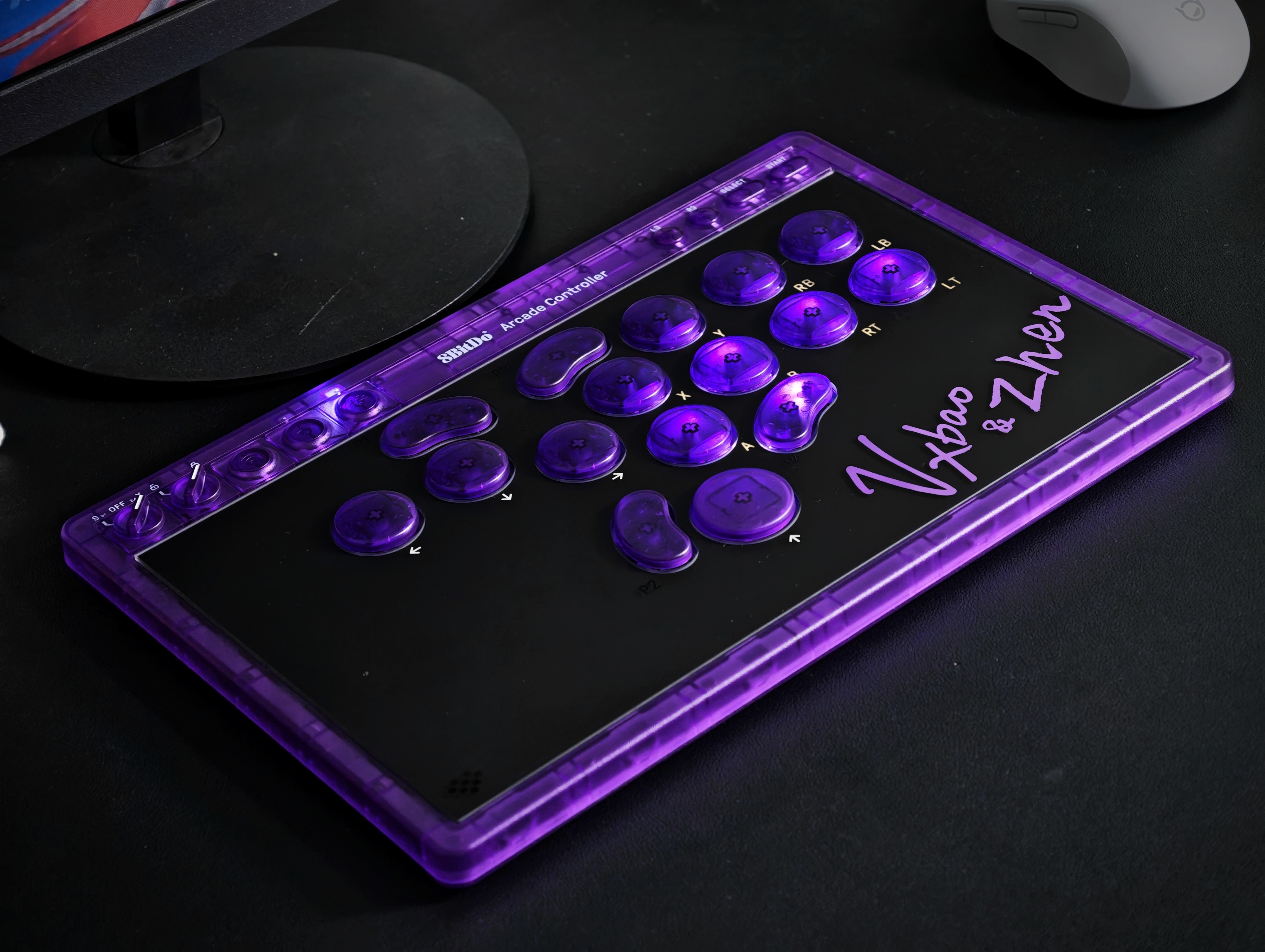 最近入手了个八位堂天刃星街机控制器,直接被这款职业选手紫透版联名款圈粉了。它是 Vxbao 小宝和 Zhen 村肉联袂打造的格斗神器,颜值质感双在线,紫透外壳搭配磁吸钢化玻璃面板,摆在桌面就是电竞房颜值担当,配合RGB光效,格斗氛围感瞬间拉满。不过,最惊喜的还是上手体验,凯华矮轴带来 30g 轻压力 + 超短键程,按起来清脆不费劲,长时间练连招手腕也不酸,完全不用怕新手手忙脚乱。低延迟传输 + 极速触发的核心优势,让指令响应快到离谱,以前用手柄死活搓不出来的升龙拳,现在闭眼都能放准,赛事锁设计还能杜绝误触,对新手太友好了。说真的,个人觉得八位堂天刃星街机控制器还是挺不错的,不管是用来入门练手,还是日常对战都很适配,格斗萌新闭眼冲就对了。