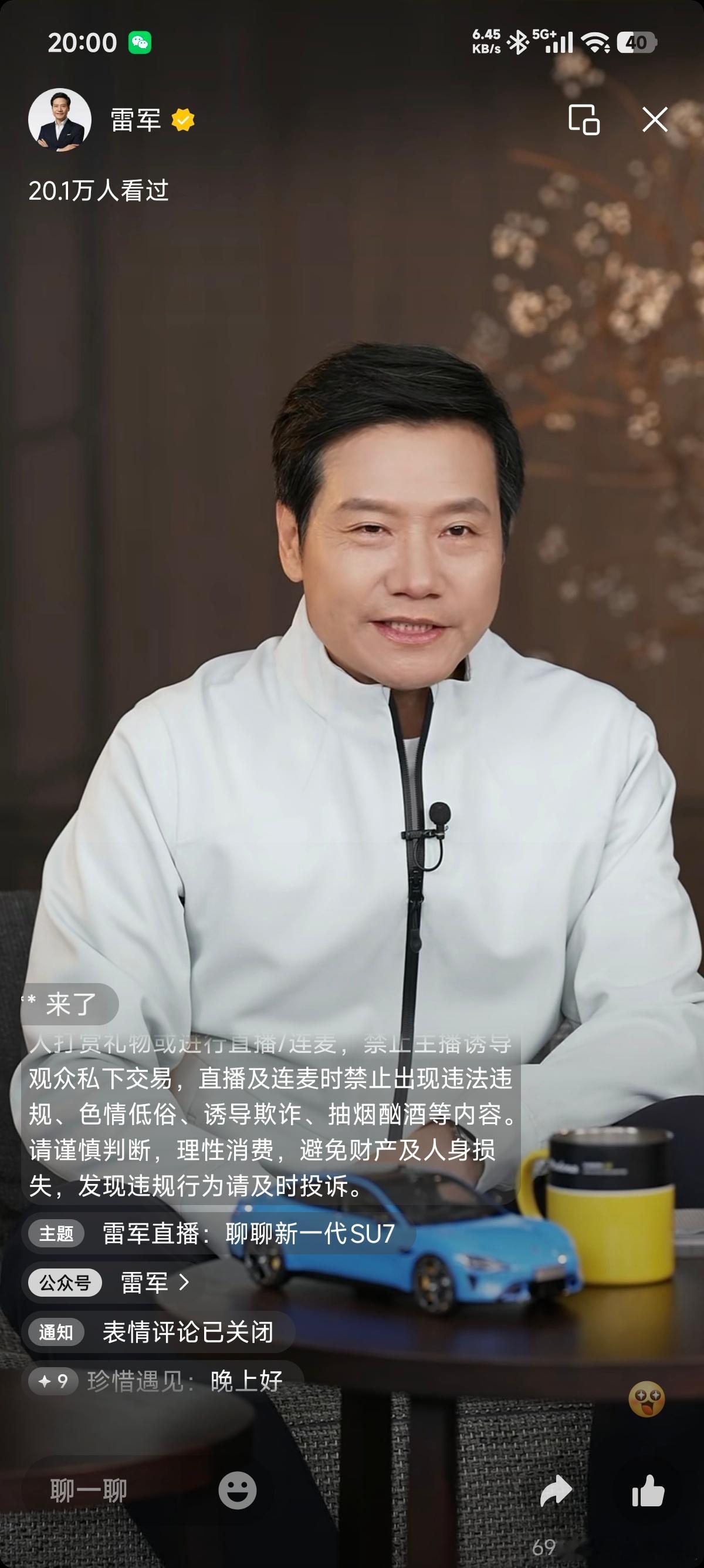雷总直播求关注,希望月底能涨粉20万。直播时,雷总说直播间的兄弟们,既然是大家都
