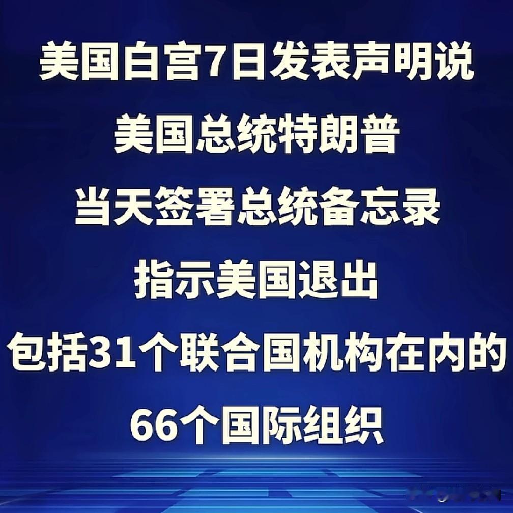 突发!突发! 特朗普批准要退出66个国际组织? 据白宫最新消息,特朗普当天已经签了字,说明这事已经在推进过程中了。 美国这是要“单挑世界”了?这还包括31个联合国机构。特朗普要干什么?可能世界舆论都有点懵了。 不过,想想最近发生的很多事,美国这样做也不意外,什么手段都能有,什么脸皮都不要。 让它去吧,咱们还那句话,要让其灭亡,必让其疯狂! 大家以为呢?