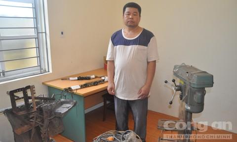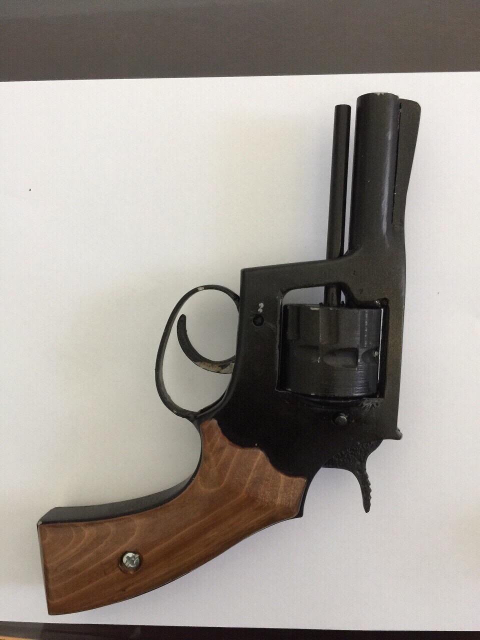 越南海阳警方在餐厅抓获的枪支制造贩卖者,手工左轮手枪,发射小口径运动步枪弹