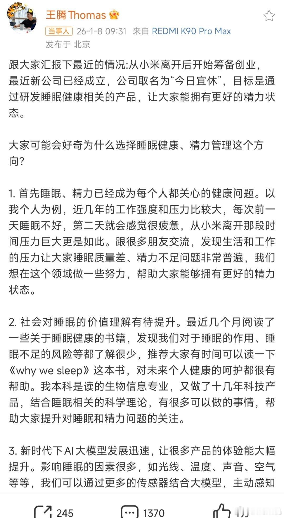 半年之期已到,恭迎王腾归位,干翻小米生态链(bushi)王腾从小米离开后成立新公司