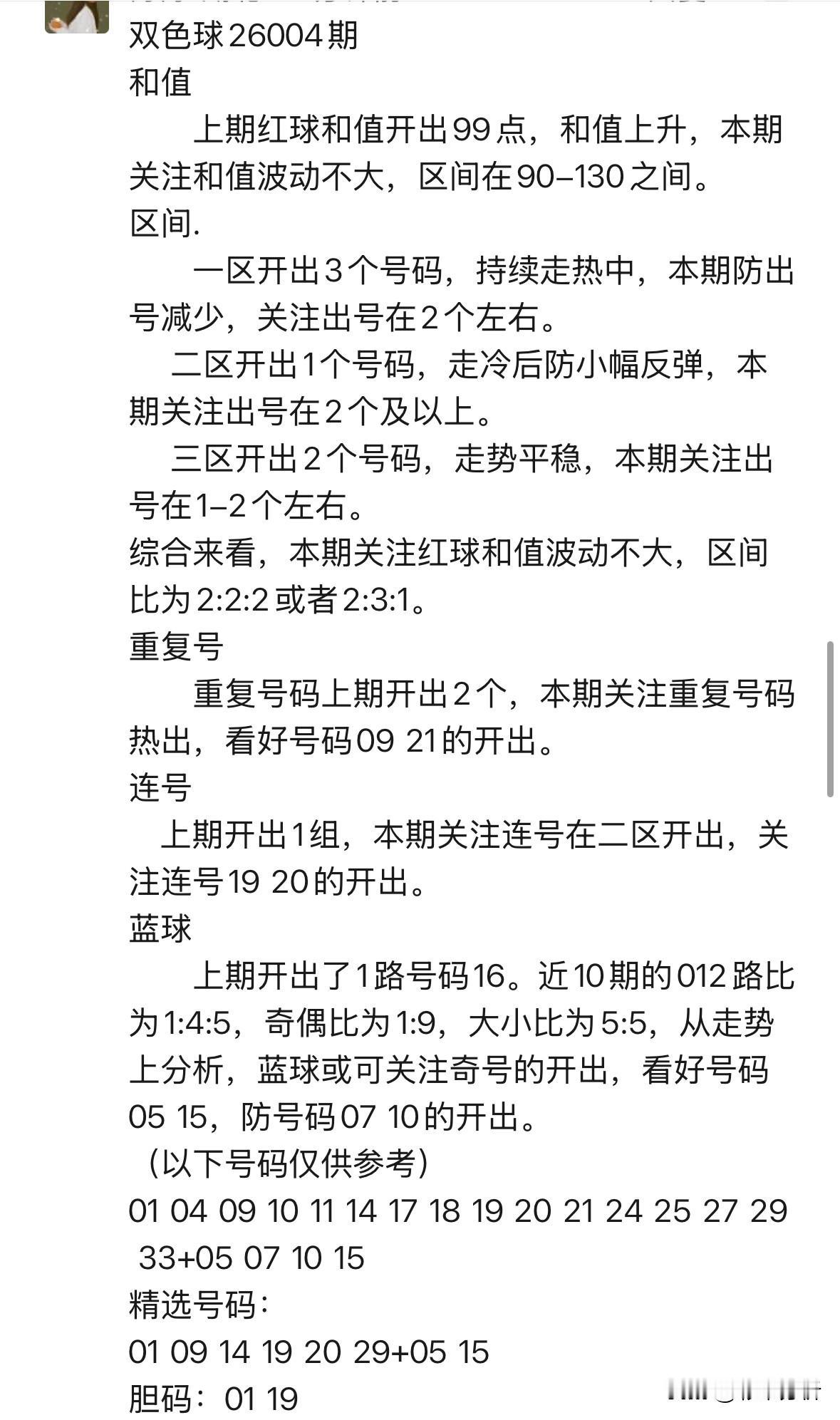 辛丹丹来啦!今晚丹丹4码定蓝:05 07 10 15,位置比较意外都在中大号区域,而上期已经开到最大号16,按照近期超大振幅导致的大小反弹交替开出趋势,最小号似乎可能性更大,而丹丹的定蓝范围看上去并不在乎这种思路。果然同一个走势图不同人能得出完全相反结论,不知道谁的运气会更好呢?[大笑][大笑]