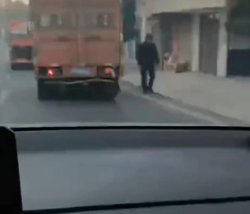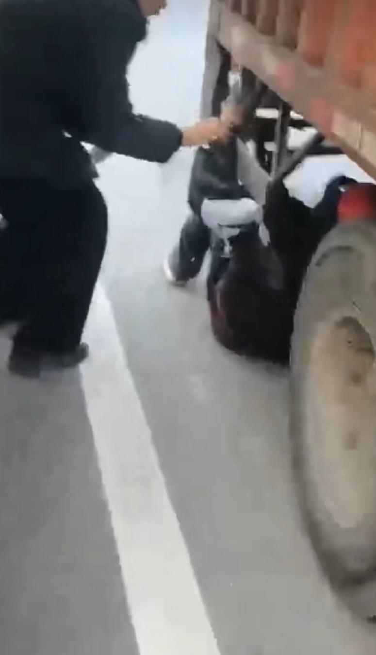 太吓人了!货车后面竟拖挂着一个人在马路上飞奔,事发湖南新邵县。今天在网上看到一段