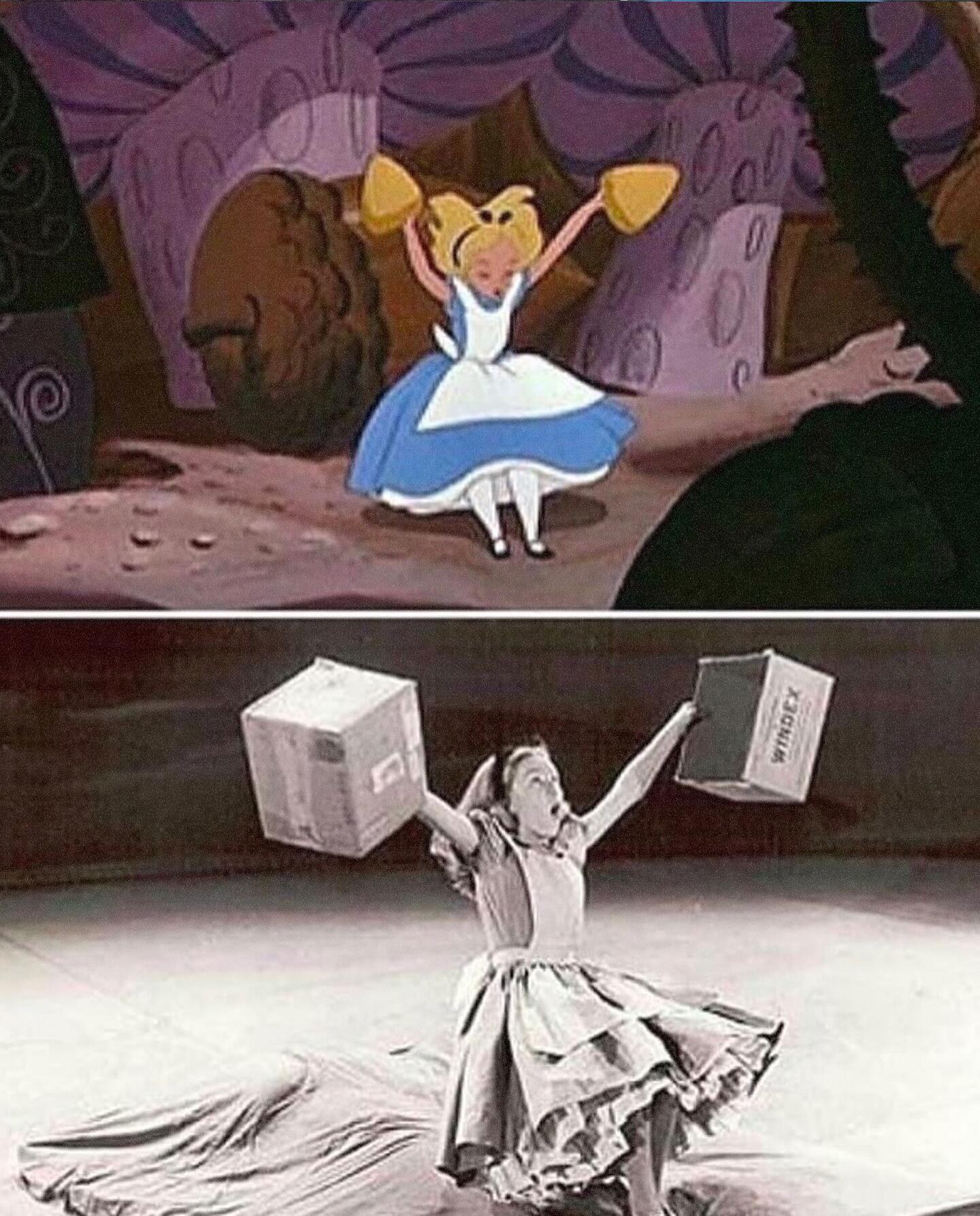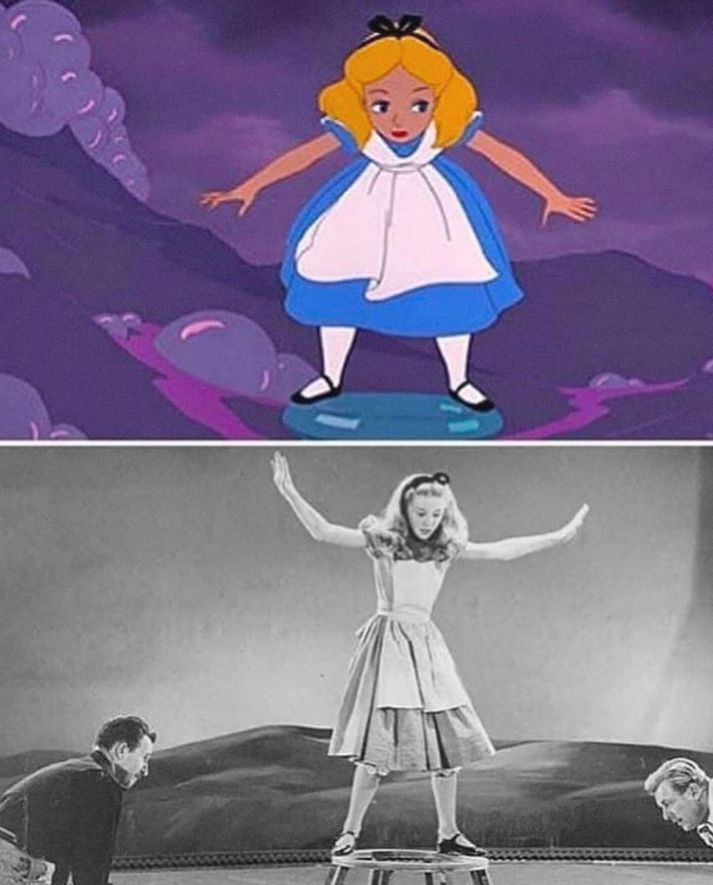 早期的迪士尼动画制作动画师会有动作参考模特,可以说算是最原始的动作捕捉,配图为《白雪公主》和《爱丽丝梦游仙境》的动画与真人模特对比!跨年电影愿