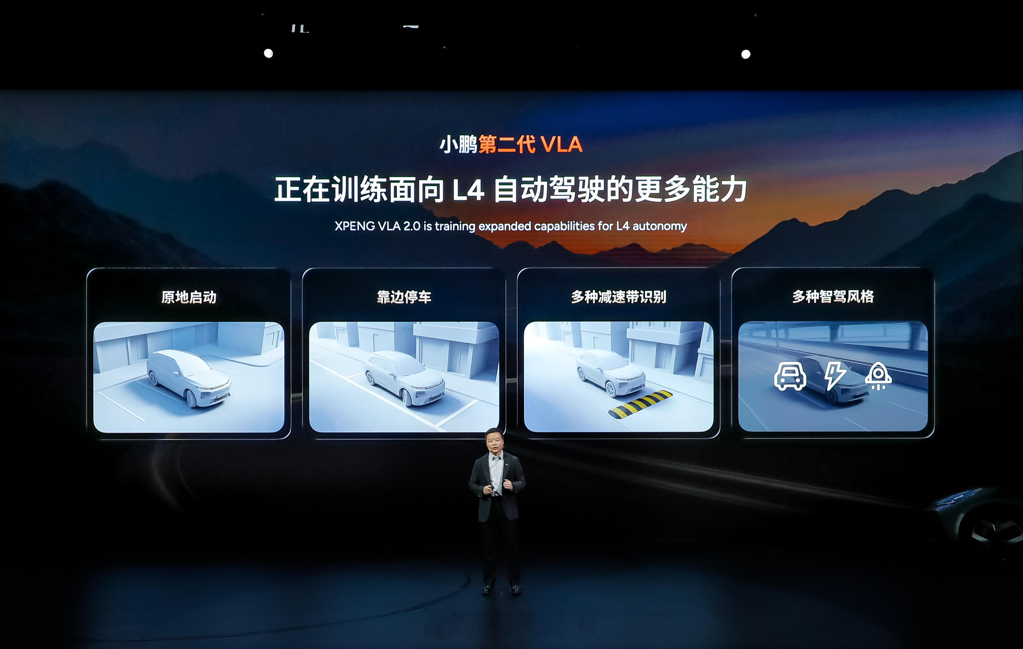 小鹏第二代VLA通过大量训练学习,涌现出应对各种非标准化复杂场景的能力。复杂场景1:识别施工占道的异形车辆,跨实线从对向车道绕行避让;复杂场景2:超大盲区S弯,防御性提前减速,安心过弯;复杂场景3:蠕行汇入主路,安心舒适同时保证通勤效率。复杂场景4:智能涌现,识别手势主动停车甚至一些连老司机都很少遇到过的复杂场景,比如学会在车道线模糊的道路上如何正确的行驶,第二代 VLA 可能会比很多新手司机更加熟练的进行应对。目前,小鹏第二代VLA正在训练面向L4自动驾驶的更多能力,如原地启动、靠边停车、多种减速带识别,甚至多种智驾风格选择。小鹏新年四车齐发小鹏第二代VLA将于26年一季度开启推送
