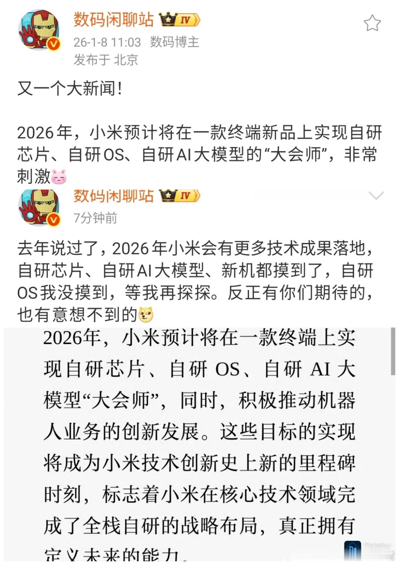 小米玄戒O1团队获得千万技术大奖,我认为这是实至名归,但还有几个重点更有看头。雷军说,2026年,小米会在一款终端设备上实现自研芯片、自研OS和自研AI大模型的大会师。这款设备,核心部分都是小米自主研发的,应该会非常重要,目前不确定是什么产品。手机、平板、笔记本电脑、手表等都有可能。小米技术迎来爆发期了,玄戒O1开了一个好头,目前反馈不错。只要把自研芯片、自研OS和自研AI大模型做好,那未来小米的优势还会不断扩大,毕竟生态互联小米已经做好了,生态完善,把核心技术掌握在自己手里,这样以后产品竞争力也更强了。