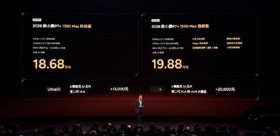 18.68-19.88万的小鹏P7+也比老款香了 增程两款: 1550MAX 科技版 18.68万 430km续航+800V+5C 1550MAX 旗舰版 19.88万 Nappa真皮座椅/后排通风加热按摩/副驾折叠板/流媒体后视镜/定制香薰 纯电两款: 615 max 旗舰版 18.68万 615km续航/800V/AI底盘 8寸后排娱乐屏/Nappa真皮座椅/后排通风加热按摩/副驾折叠板/流媒体后视镜/定制香薰 725 max 旗舰版 19.88万 725km续航./其他配置一样 选装: 2颗图灵AI芯片VLA 12000元 3颗图灵AI芯片VLA/VLM 20000元 教授觉得这价格还是OK得,不过要享受最新的VLA的话,还得加2万,目前来看,增程版比纯电版更香一些,430km纯电续航也只要18.68万,还要啥自行车呢。【来自懂车帝车友圈】