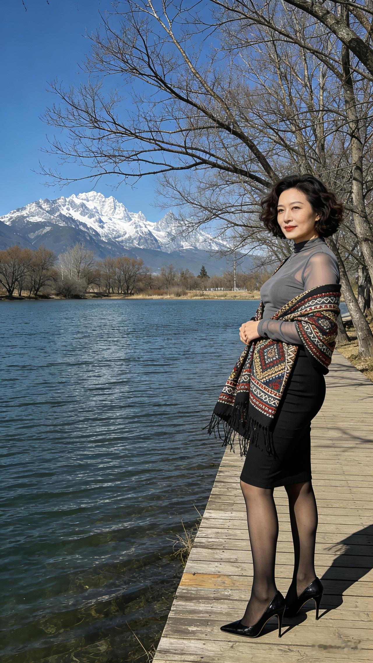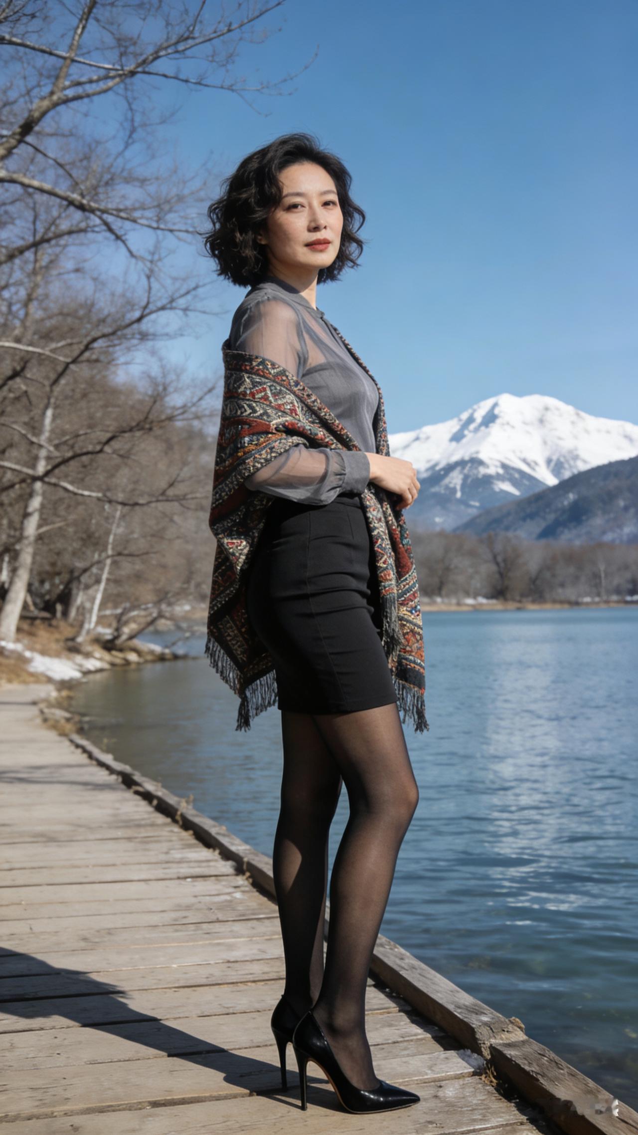 周末拍照,发现藏青色裙子真是自带气场。版型利落,配黑丝也不显沉闷,反而把身形衬得