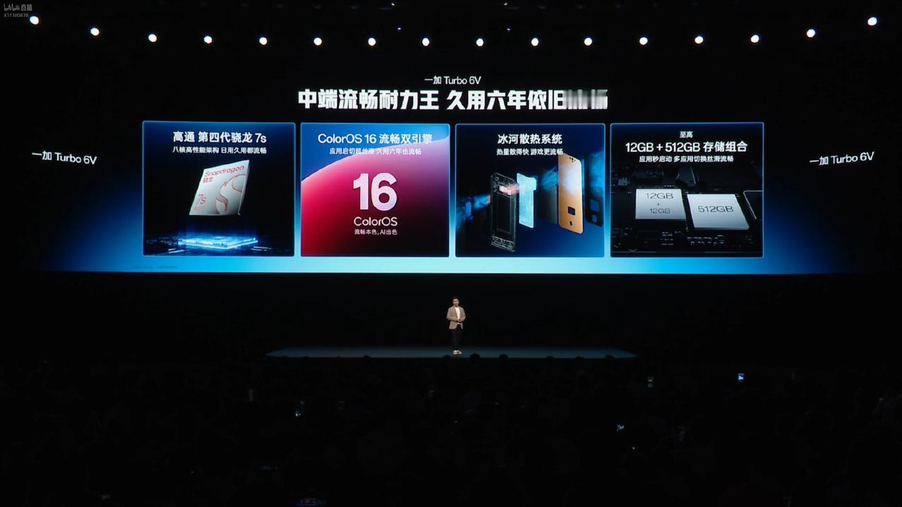 一加 Turbo 6V发布 9000mAh 电池+80W 有线快充、27W 有线反充, IP66、IP68、IP69、IP69K 满级防水 骁龙 7s Gen 4处理器 144Hz 高刷屏 其他配置和 Turbo 6 基本没区别 8+256 1699 12+256 1899 12+512 2199 支持国补15%