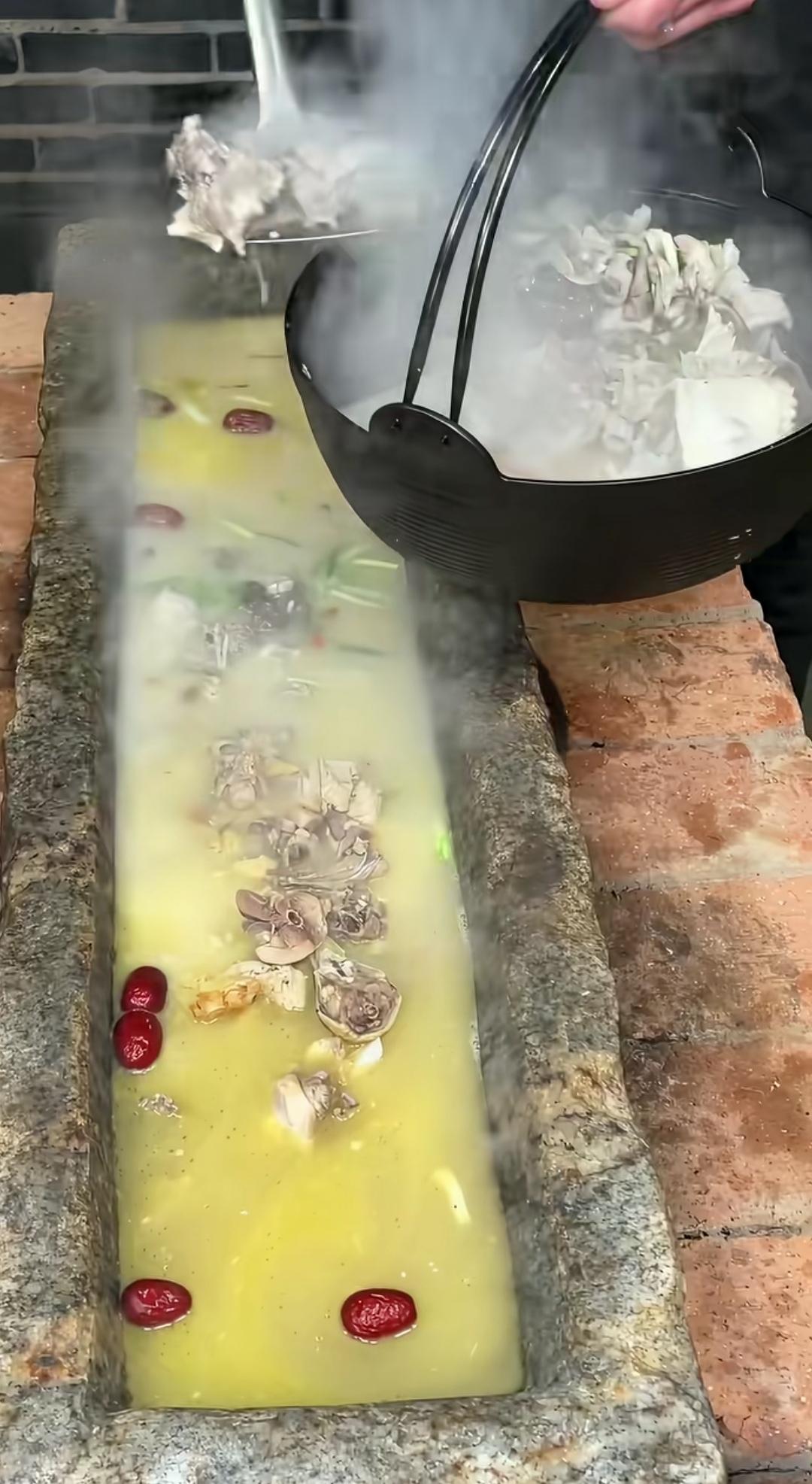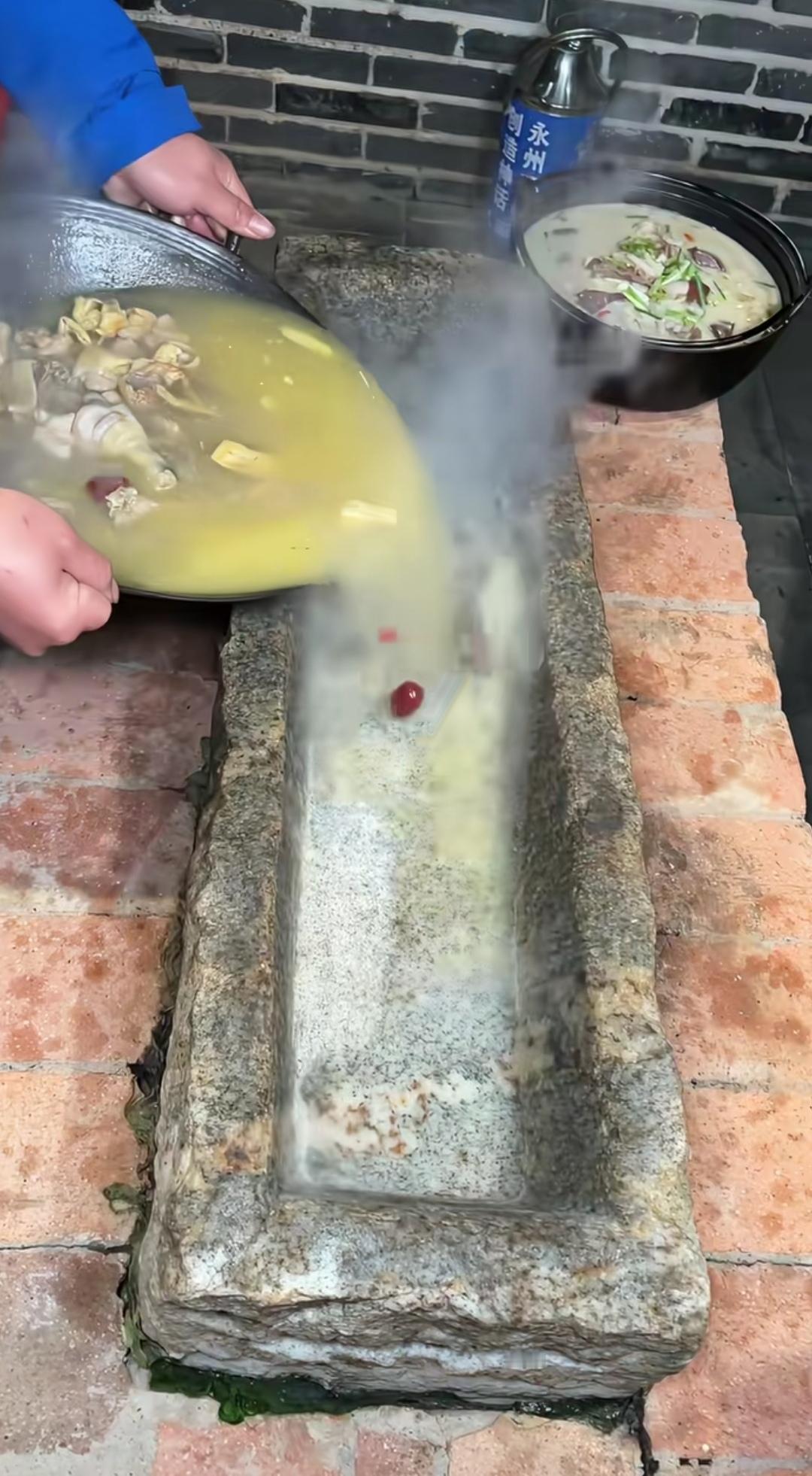 瞧游客享用石槽火锅时那股子热乎劲儿,着实令人意外。昔日常见用来给猪喂食的石槽,何时竟摇身一变,成了饭馆招揽顾客的新法宝? 看得出,老板之所以想到用石槽替换铁锅,打造独特且有创意的火锅,应是看准了游客的猎奇心理。 用昔日的“猪槽”来烧火锅,在老一辈人眼里,根本不会有人去吃;但对于对“猪槽”一无所知的年轻人而言,却是新鲜玩意儿。毕竟用石材烹制食物与铁锅的口感不同,他们才不会去管吃石槽烧的火锅对身体好不好,石槽里面有没有清洗干净呢!
