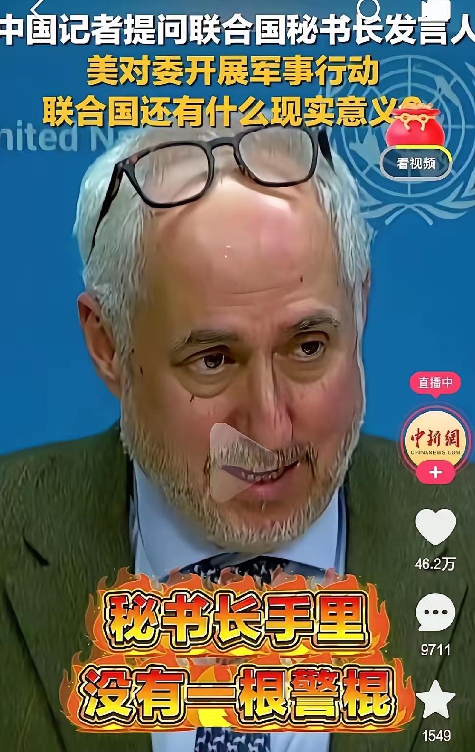 大快人心!中国记者直戳联合国秘书长心窝子:美国都上门绑架别国总统了,联合国还有存在的意义吗? 就说最近这事!美军直接冲进委内瑞拉首都,把人家合法总统马杜罗夫妇押回美国受审。扣了个“毒品恐怖主义”的帽子,到现在连个实锤证据都拿不出来,简直离谱到家! 这可不是美国第一次干这种缺德事。1989年,打着“禁毒”的幌子就入侵巴拿马,把不听他们话的诺列加抓走;2003年更狠,编了个“有大规模杀伤性武器”的理由打伊拉克,最后绞杀了萨达姆,结果呢?啥武器都没找着! 这些事桩桩件件都违反《联合国宪章》!宪章里明明白白写着,不能随便侵犯别的国家主权,可美国每次都绕开安理会,把自家的法律当成全世界的规矩。联合国的谴责和决议,在他们眼里就是一张废纸! 中国记者这一问,可算说出了全球好多国家的心里话。联合国当初成立,不就是为了制止侵略、维护和平吗?现在倒好,强国想抓谁就抓谁,小国的主权被踩在脚底下,这组织的意义,真该好好掂量掂量了。 美国这么干,早就惹了众怒!中国、俄罗斯直接要求安理会开紧急会议,巴西、墨西哥也公开骂他们,就连美国本土都有老百姓上街抗议。 说句实在的,霸权横行的日子早该到头了!联合国的意义,从来不是给霸权当遮羞布,而是要给大小国家都留个公平说话的地方! 各位读者你们怎么看?欢迎在评论区讨论。