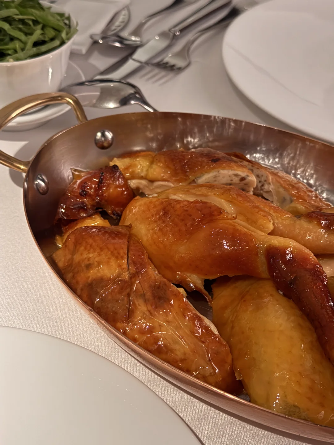 香港四大名鸡已经打卡了Batard、Louise、Neighborhood 这次终于把最后一家集齐了 Belon是藏在中环小巷的米其林一星法餐Fine dining 灰蓝色调很适合拍照和约会 - 🍗 招牌「烤三黄鸡」皮脆肉嫩,原汁原味 搭配的是青豆烟肉薯蓉 拿破仑Mille Feuille 夹心吉士酱混法国草莓,甜而不腻