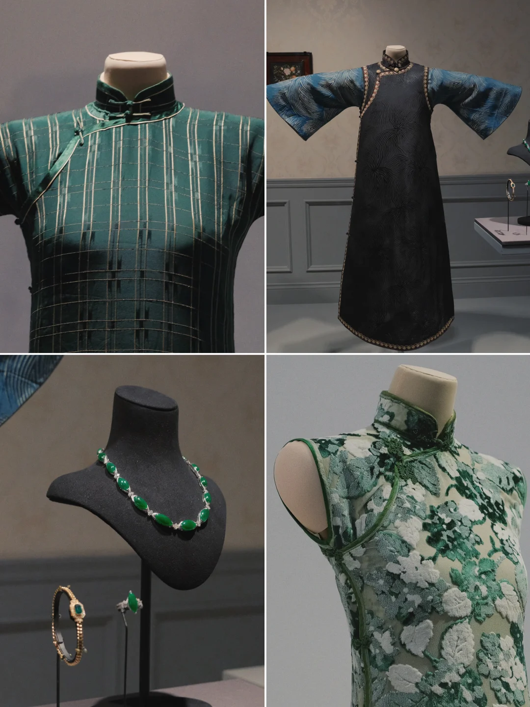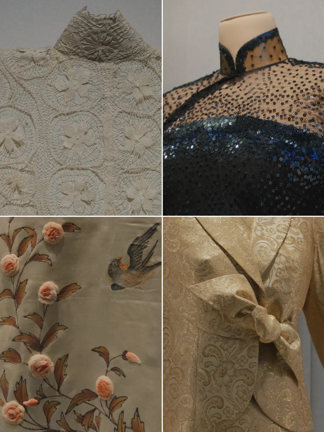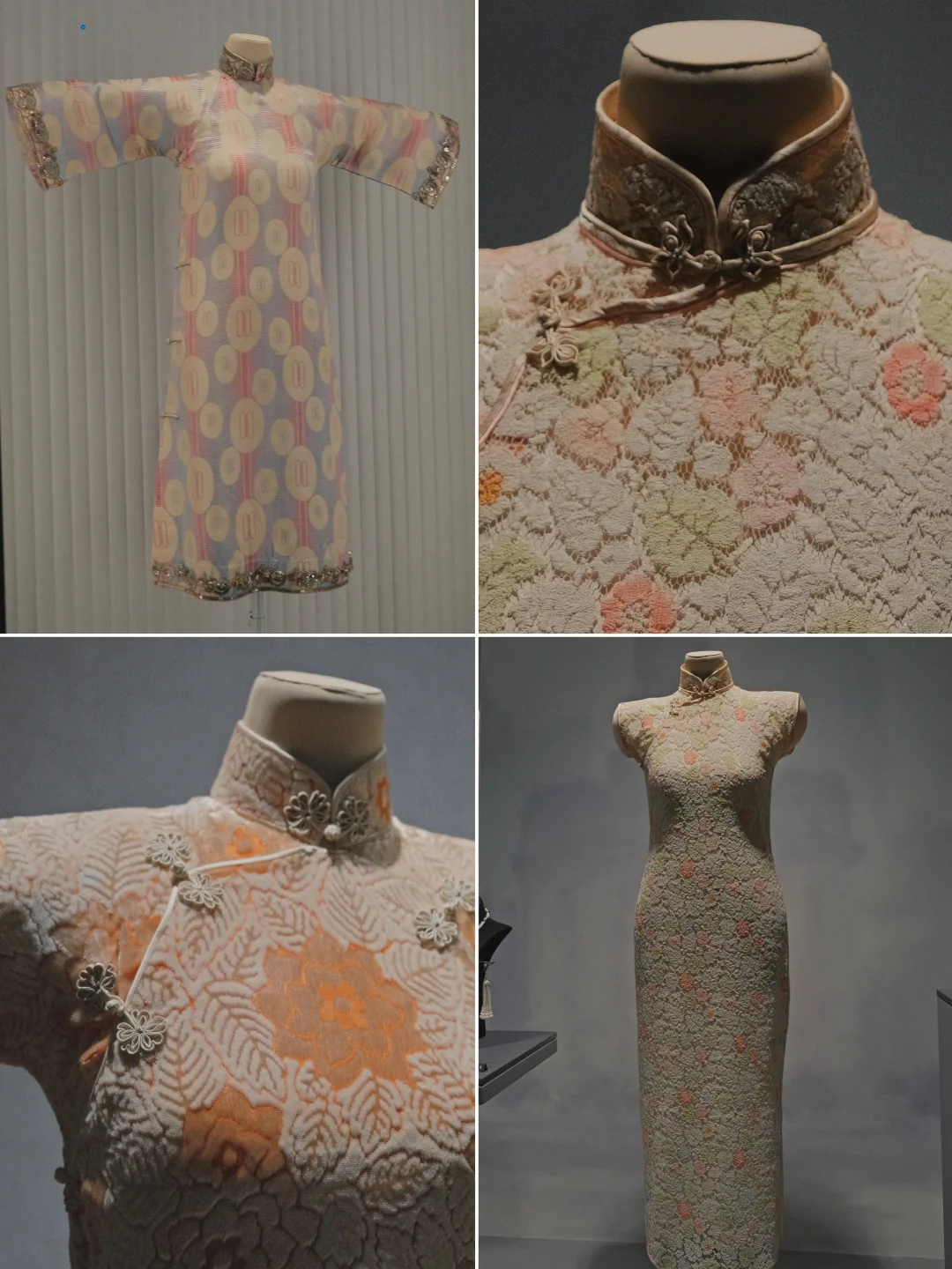还有贝洽女士的捐赠(划重点!贝洽是蒋士云之女、贝聿铭之妹,展出的不少旗袍都是“北京四美”蒋四小姐生前穿着的),