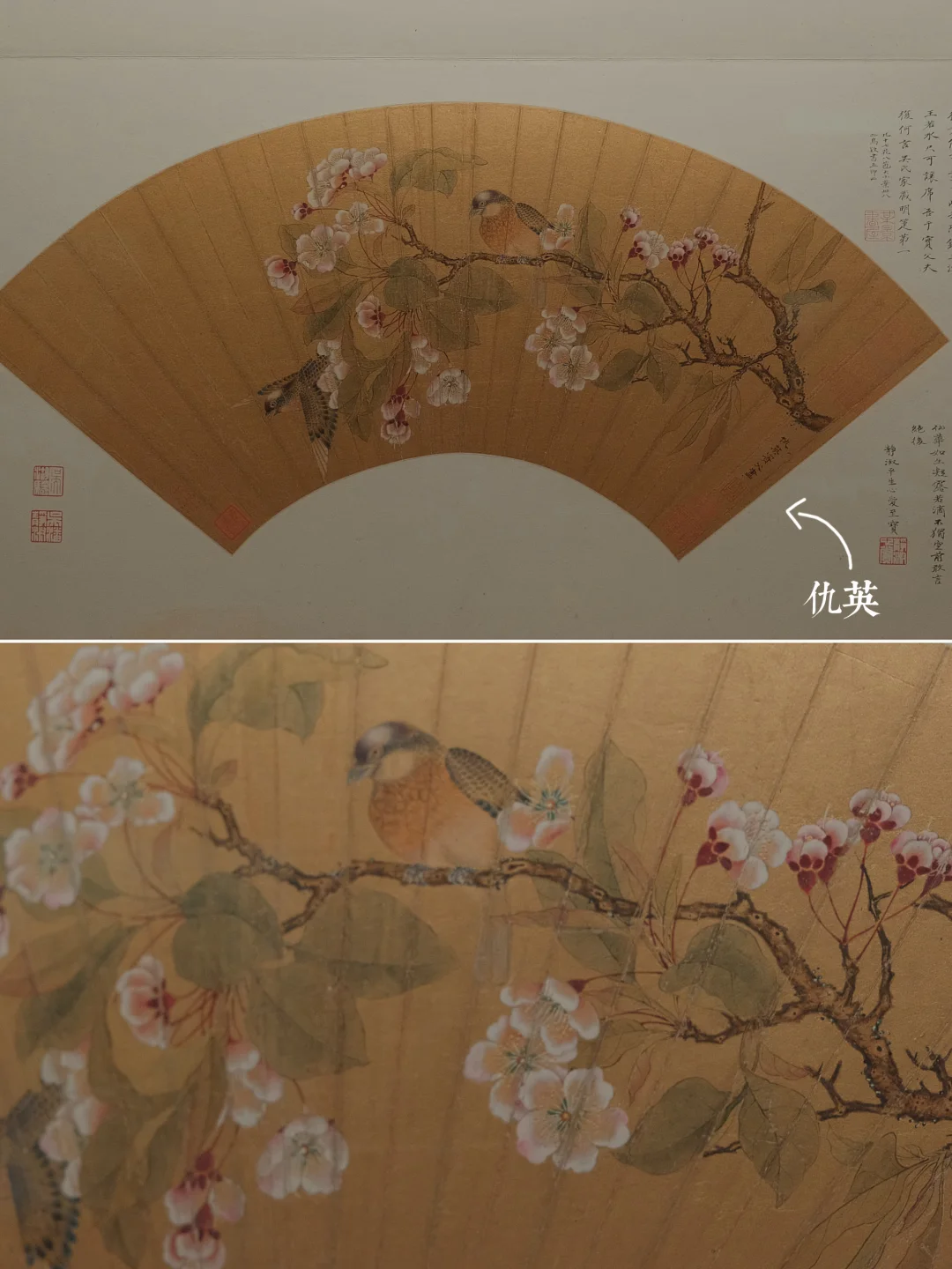 仇英《海棠山鸟图》:吴氏家藏明代折扇第一的作品(❤️海报同款,小翼的本场最爱)