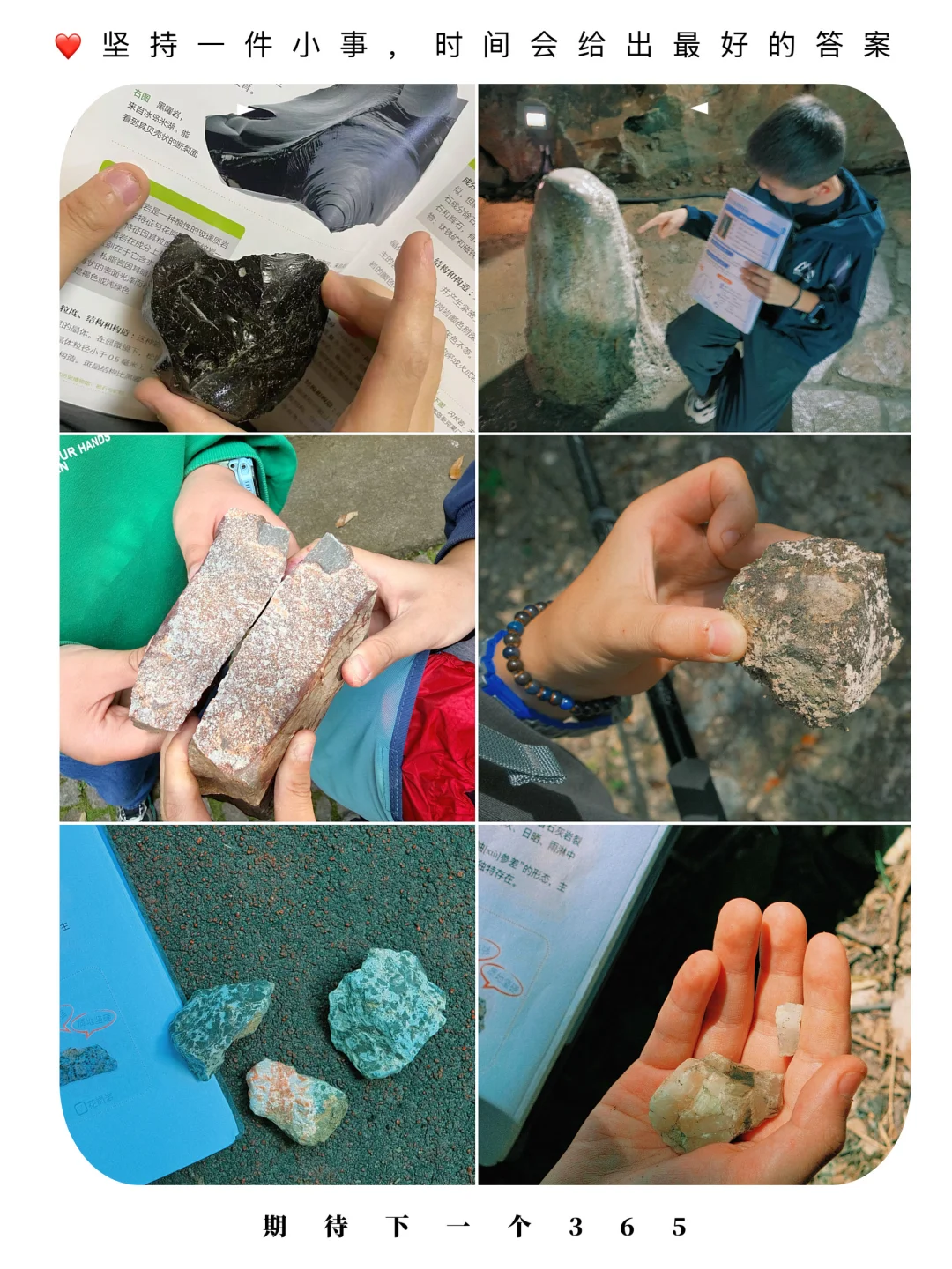 每块石头背后,都是我们一起蹲在岩壁旁、野道上对照研学手册、寻找石头的时光~