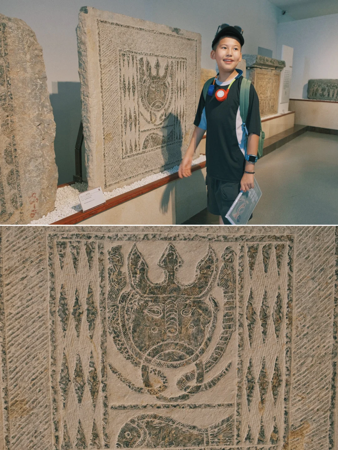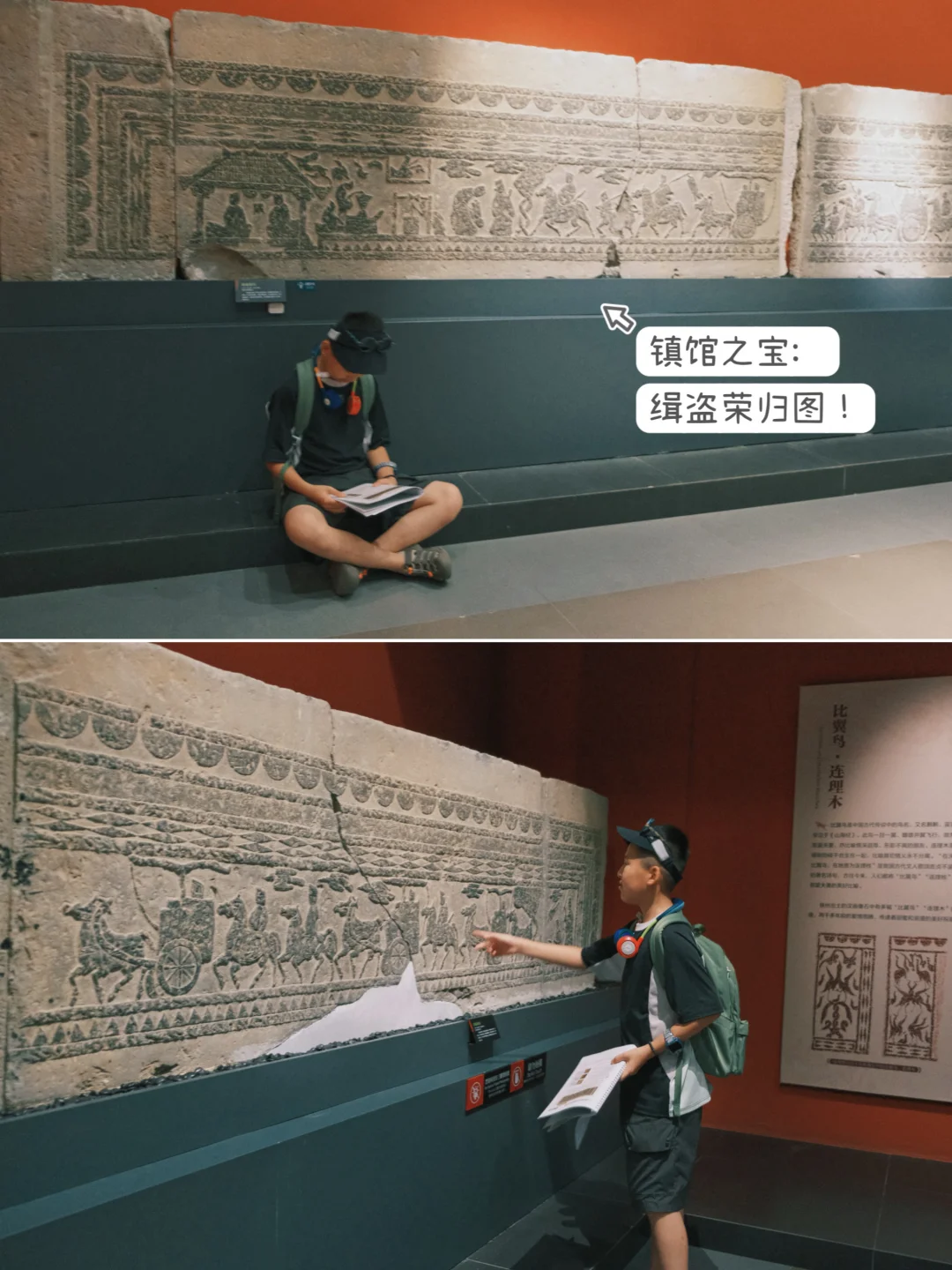 ▪️研学:参观前,照例给娃设计了一套研学手册——把阴刻 / 浮雕的区别、镇馆之宝的看点都整理了一下,娃对着手册,边寻宝边学习,收获满满!(👇戳左下角,get手册内容)