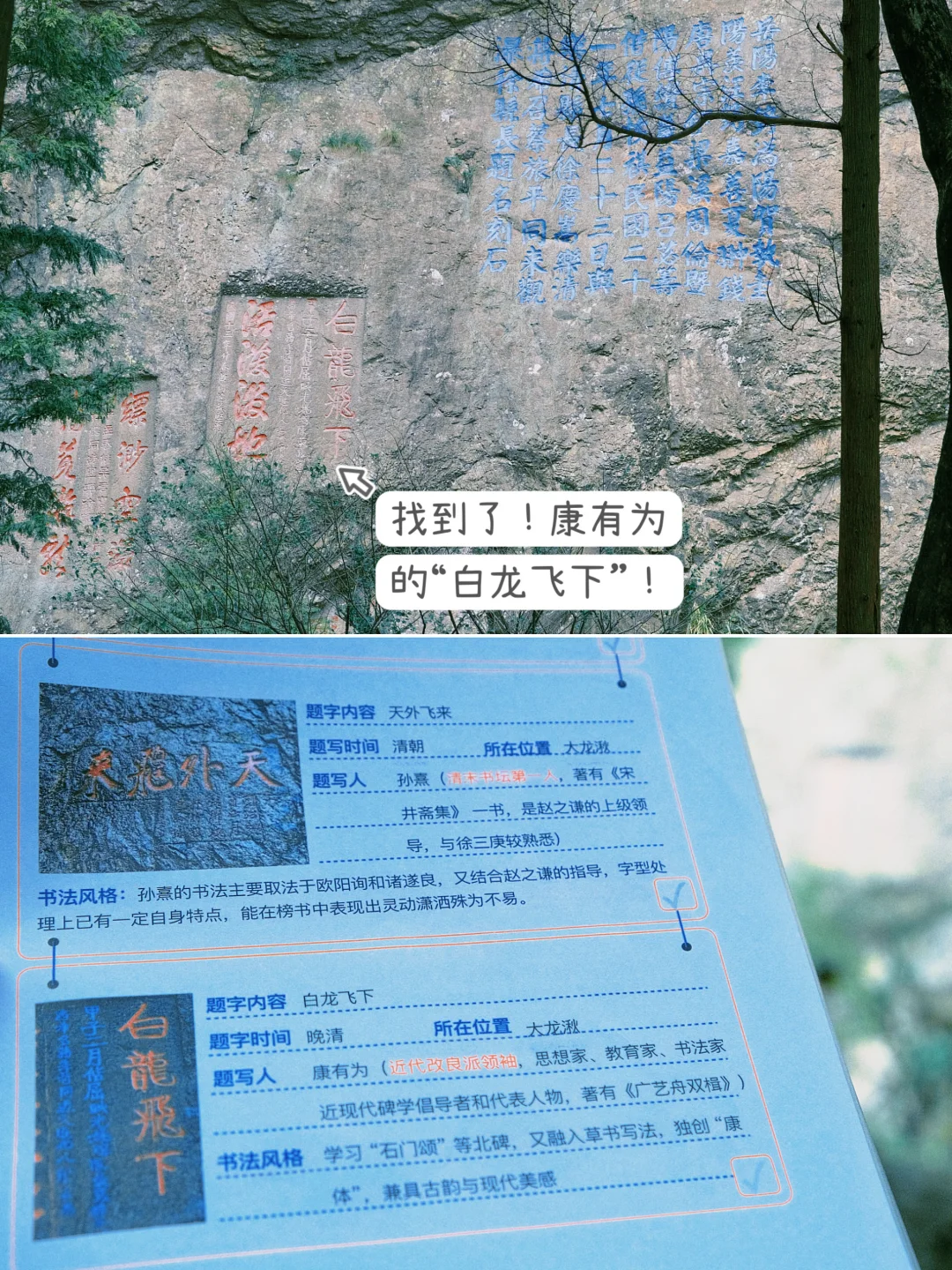 ▪️路线规划:入口→流纹岩景观→剪刀峰(不同角度看像鳄鱼、啄木鸟)→大龙湫瀑布(雁荡山最绝的摩崖石刻扎堆在这里)→出口