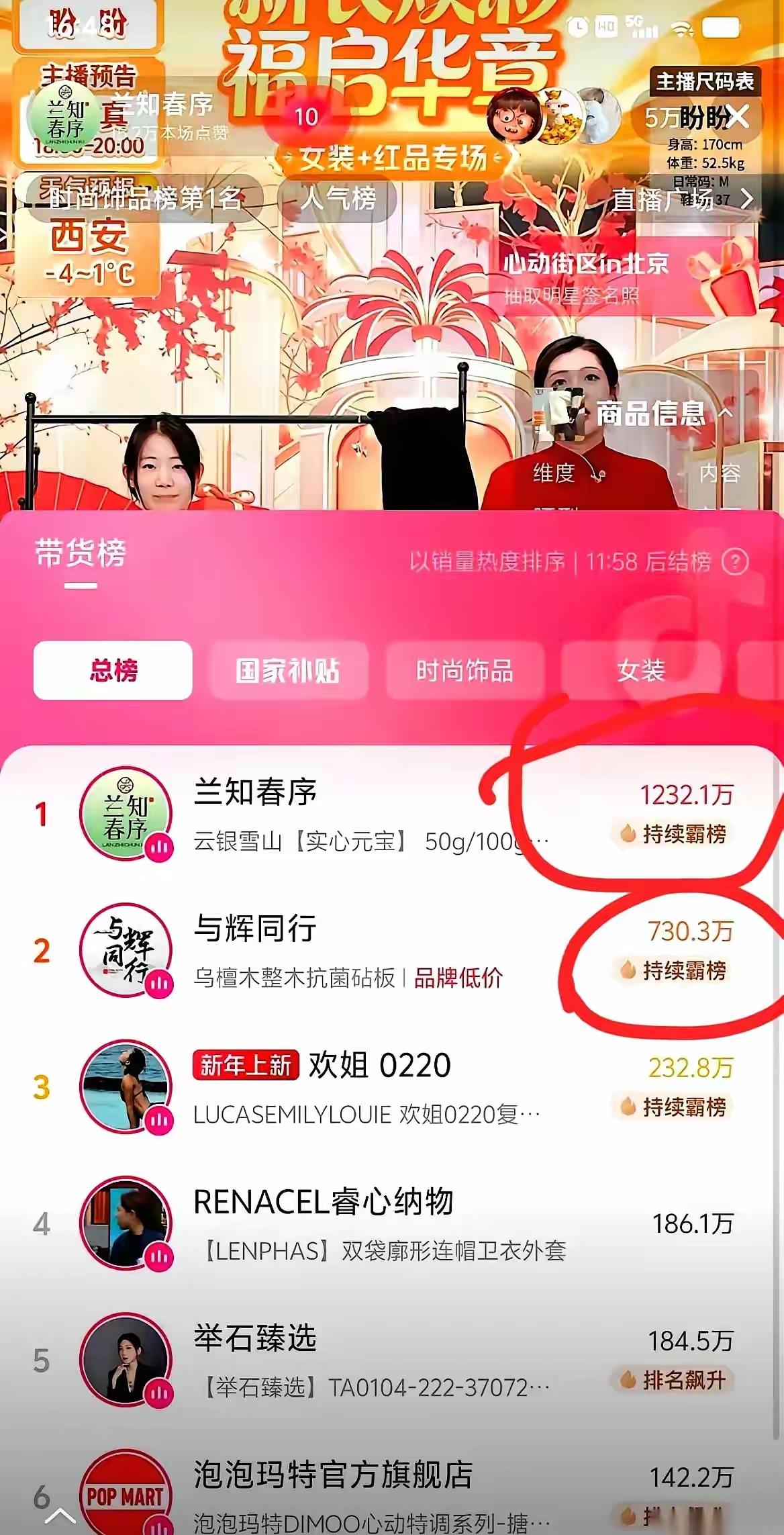 一千两百多万。 就昨天一个晚上,一场直播。 一个叫盼盼的姑娘,愣是把“兰知春序”这东西,直接干到了全网第一。