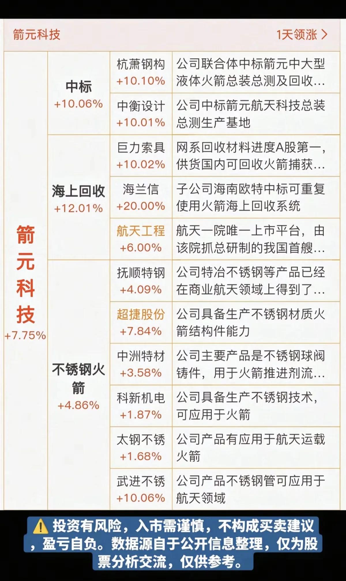 1月9日,周五A股这个板块有望大爆发!!! 箭元科技国内首个海上回收火箭基地开工,也是首个不锈钢火箭超级工厂正式启航;重点关注:杭萧钢构、巨力索具、海兰信;相关概念股有望异军突起,让我们拭目以待吧!!!