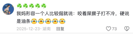我妈形容一个人比较倔就说:咬着屎撅子打不冷,硬说是油条