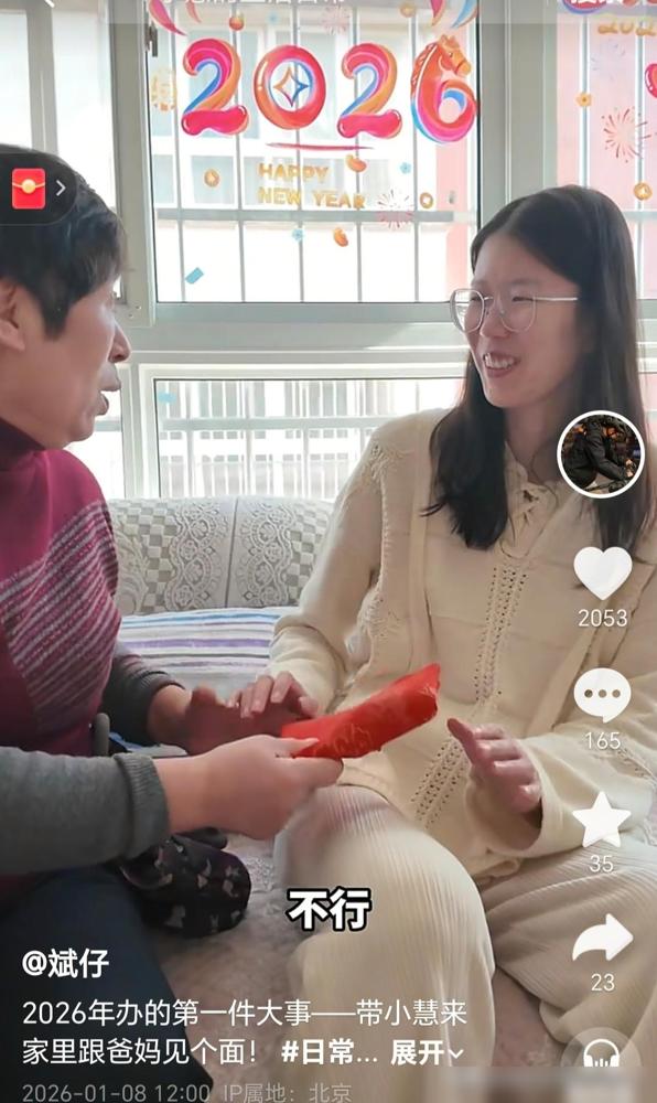 斌子女友终于见家长了… 斌子妈妈肉眼可见的紧张,把家里收拾的干干净净的,还特意准备了万里挑一的大红包,准儿媳第一次来家里,多年夙愿终于要往前推进一大步了,斌子妈妈在给红包时紧张的都有点说话说不利索了… 斌子这次把女朋友带回老家,不仅是家里的一桩喜事,更像是全家的一次“大考”。其实也不怪老太太局促,这姑娘的履历确实有点“天花板”的意思:北交大研究生毕业,身高一米八以上,月入四万多,关键还有北京户口。 我倒觉得斌子妈妈说那句“烧高香了”挺真诚的,在长辈眼里,这种高学历、高薪水还带户口的女孩,简直就是最完美的儿媳样板。面对这样一个各方面都压自己一头的准儿媳,婆婆那种小心翼翼的维护感,真的挺让人感触。 其实看斌子的职场跨越也挺励志,以前当摄影师一个月拿两万,在同龄人里不算差,但离“在北京扎根”总觉得还差口气。现在转行做自媒体,收入眼看着能到三五万了,这才算是在底气上跟女友稍微拉近了一点距离。 我更在意的是那个北京户口。对于北漂来说,几万块的月薪固然诱人,但那个户口才是真正决定能否“安家”的入场券,斌子这波不仅是找了个灵魂伴侣,更是找了个能让他梦想落地的合伙人。 不过换个角度看,这种“高配”婚姻其实压力也挺大。斌子虽然现在靠自媒体翻了身,甚至能预见到接下来的订婚、婚礼又是几波大流量,但要在这种全方位优越的女方家里站稳脚跟,光靠拍视频的收入可能还没那么稳。 那种两三年买房的奇迹虽然难复制,但斌子这步棋走得确实稳。以前是单打独斗的摄影师,现在是有资源、有话题、有高质伴侣的内容创作者,他的人生转折点其实就是从遇见这个女孩开始的。 虽然有人觉得斌子是“高攀”,但我感觉在互联网时代,能接住这种阶层跃迁的运气也是一种本事。看着他从幕后走到台前,再到带这么优秀的女孩回家,这种普通男孩靠努力加运气逆袭的剧本,谁看了不得感慨几句。