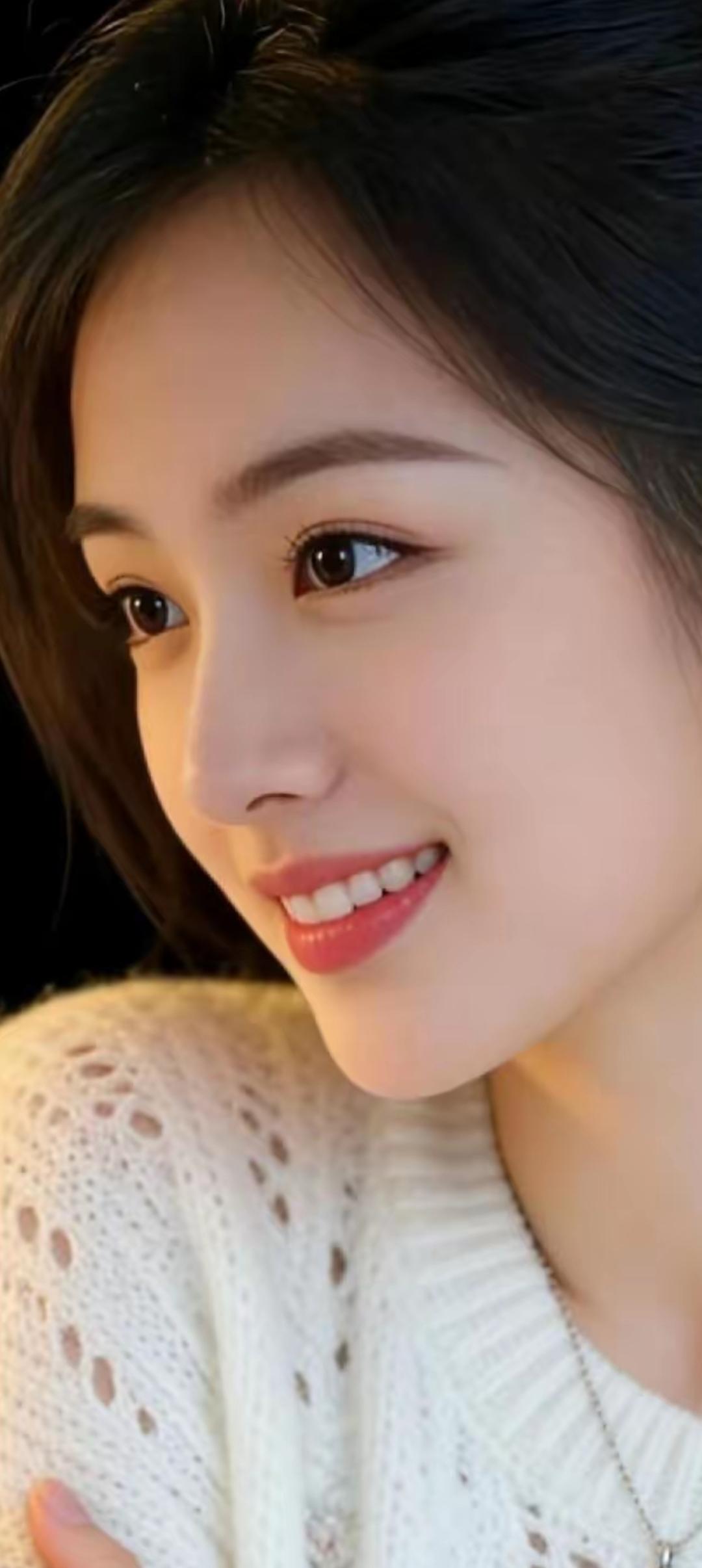 温柔甜美的笑容,白色针织衫的清新,让人心动的瞬间。🌸💖