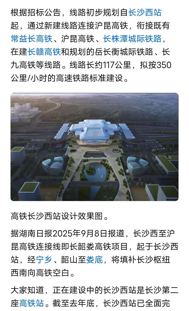长沙途经韶山至娄底有望新建一条时速350公里的直达高铁,目前已正式启动前期研究工作,未来建成后长沙坐高铁来往娄底和邵阳还有怀化和永州等地将更加便捷,长韶娄高铁未来也将是广西南宁和桂林等地坐高铁来往长沙最便捷的通道,该项目为长益常高铁和沪昆高铁的联络线,全长约117公里,起于长沙西站(12台22线站房面积加配套设施共49万平方米),止于娄底南站,主要途经宁乡和韶山等地,长沙西站目前已经开始装修阶段,预计2027年可以投入使用。