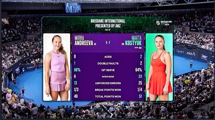 惨烈的对决!! 第一盘足足打了69分钟!! 在正在进行的布里斯班女单最后一场1/4决赛中,由科斯科克挑战安德列娃,这场比赛一看对阵就知道谁想胜出都不容易。这不,科斯科克5-3发胜没有抓住机会,被安德列娃连破带保打成5-5,第11、第12局各自保发,比赛进入了抢七,抢七中科斯科克6-5先拿到盘末点,被安德列娃扳成6-6、接着科斯科克又7-6再次拿到盘末点,可又再一次被安德列娃扳成7-7,终于科斯科克在8-7第3次拿到盘末点时抓住了机会,9-7赢下抢七,也艰难的拿下第一盘!!哈哈,这比赛太精彩了。目前第二盘比赛正在进行中,局分3-3。 好看好看,双方加油!!布里斯班网球赛 安德列娃