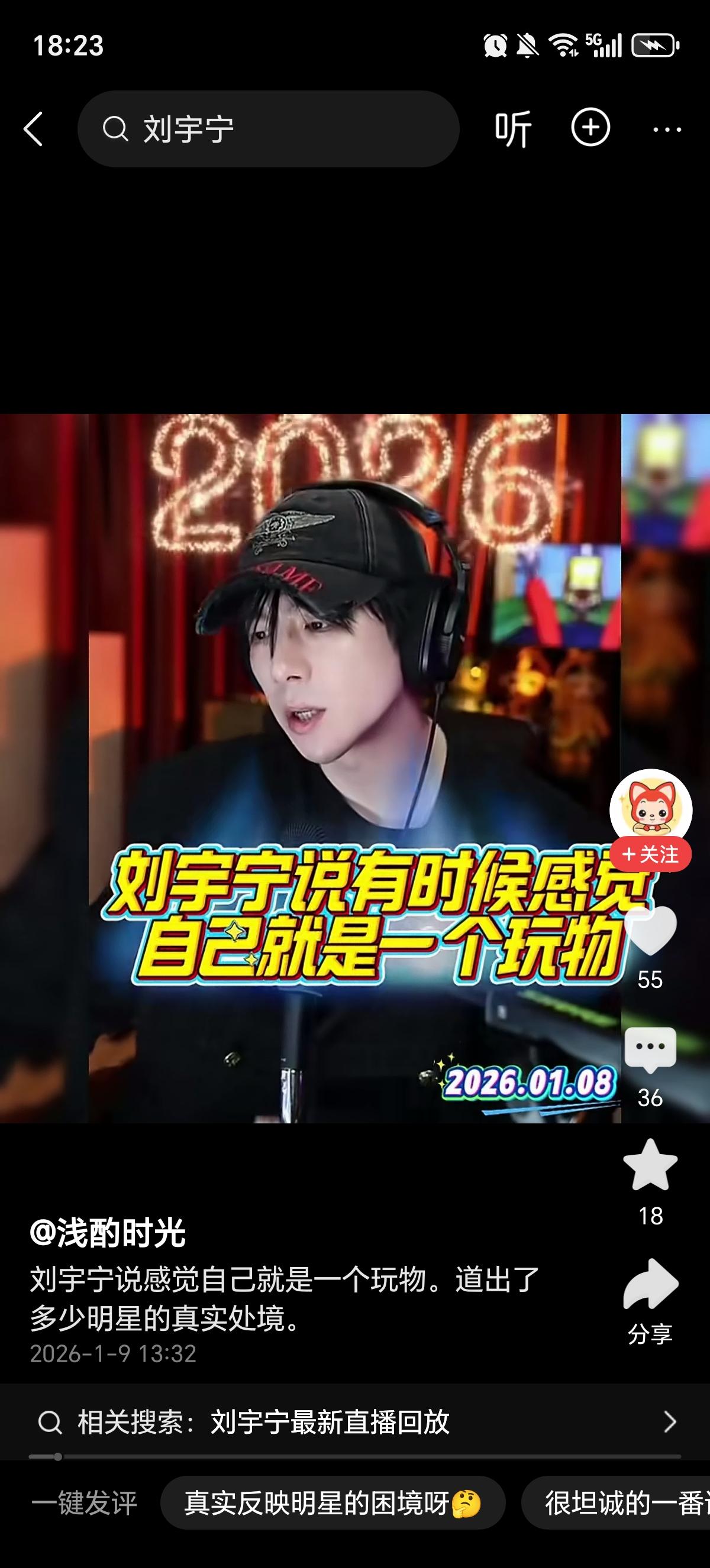 刘宇宁最新直播破防: 我连小丑都算不上, 我只是个“玩物”…… 看完刘宇宁昨晚的直播,心情久久不能平静。 那个在舞台上嘶吼、在剧里杀伐果断的刘宇宁,竟然会对着镜头说自己是个“玩物”。 “我觉得自己甚至连小丑都算不上,我是个玩物。” 这句话一出来,真的像一把刀子,扎心又真实。 以前我们看明星,总觉得他们站在聚光灯下,是高高在上的。但刘宇宁这一句大实话,把娱乐圈最后那块遮羞布给扯下来了。 小丑还有面具,还有剧本,演完还能谢幕。 而“玩物”呢? 得任人摆布,任人评说。 需要你的时候,把你捧上天; 不需要你的时候,随手一扔,你啥也不是。 听着他在生日这天说出这种话,心里五味杂陈。 他太清醒了,清醒到知道自己在资本面前没有“人”的尊严,只有“商品”的价值。 普通人还能发个脾气,他只能受着。 这种“透彻的清醒”,其实是成年人世界里最深的无奈。 别想那么多…… 至少,还有那么多人爱你,把你当“人”看,而不是当“玩物”看。
