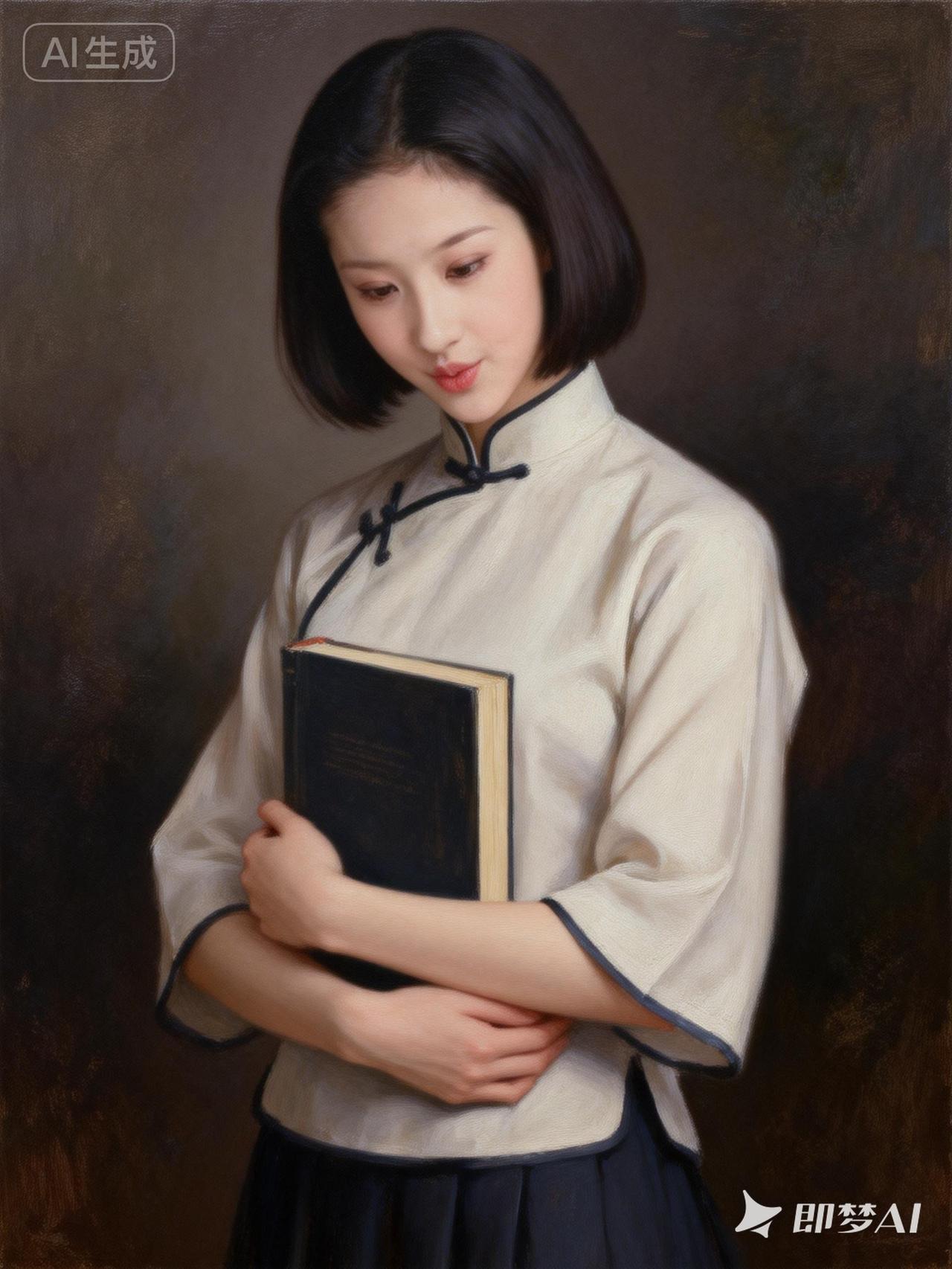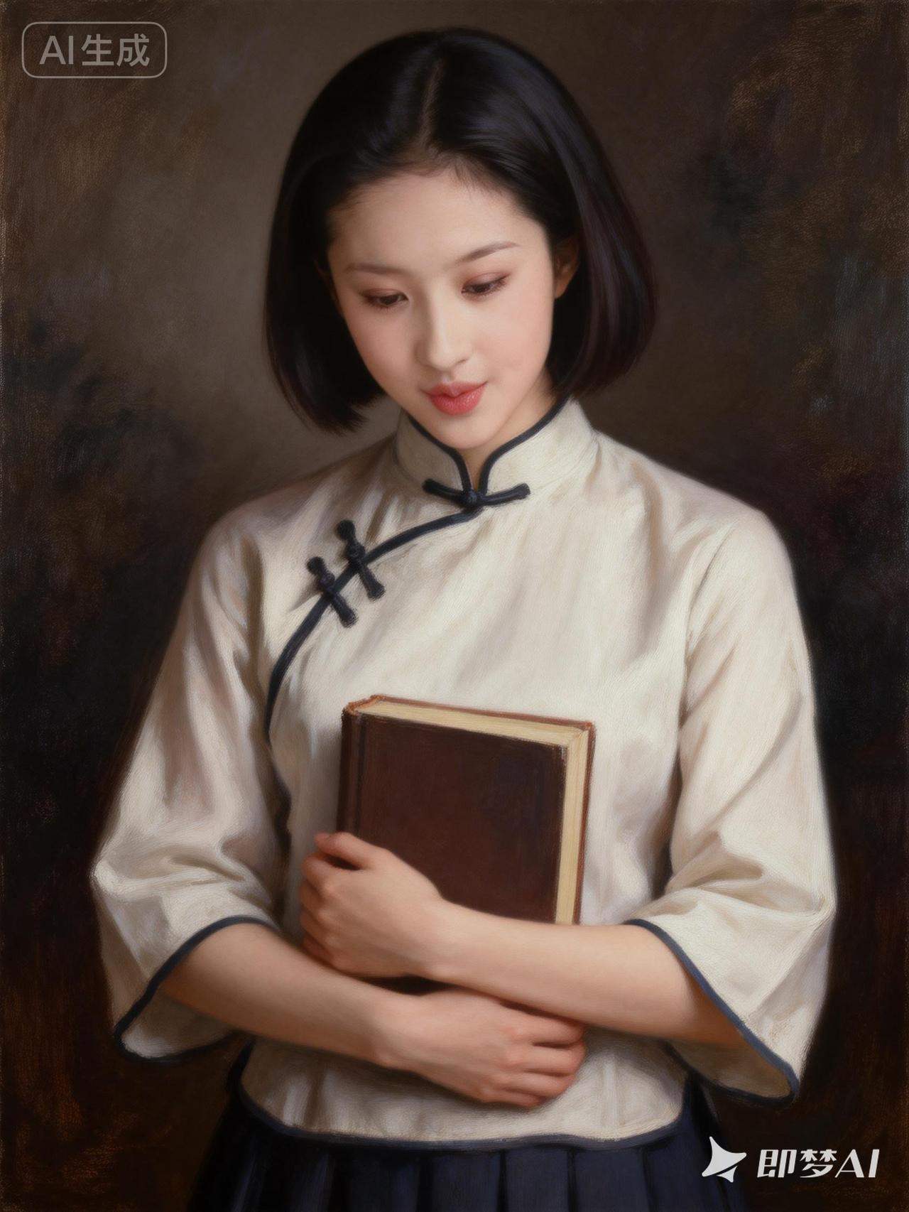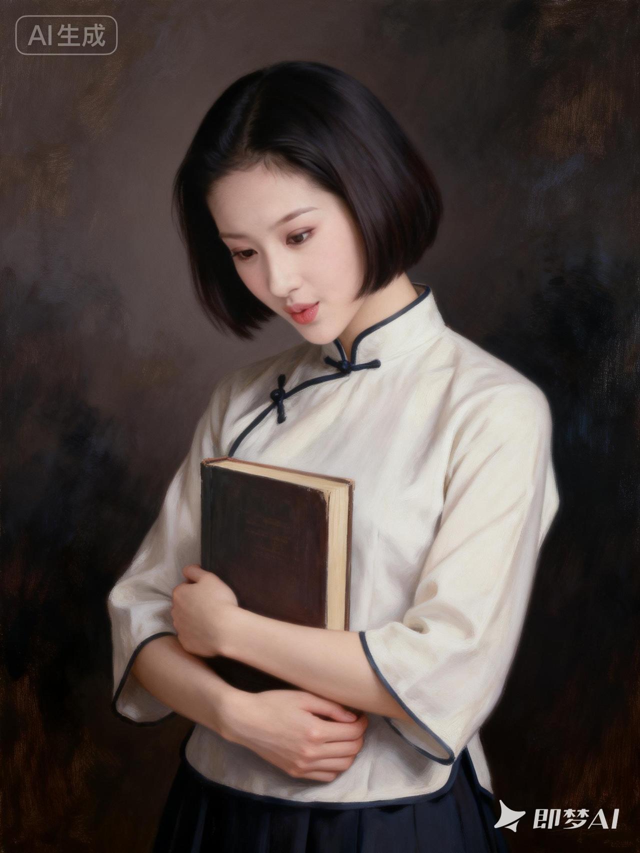 沉静书香,梦回民国,优雅少女与古书相伴。