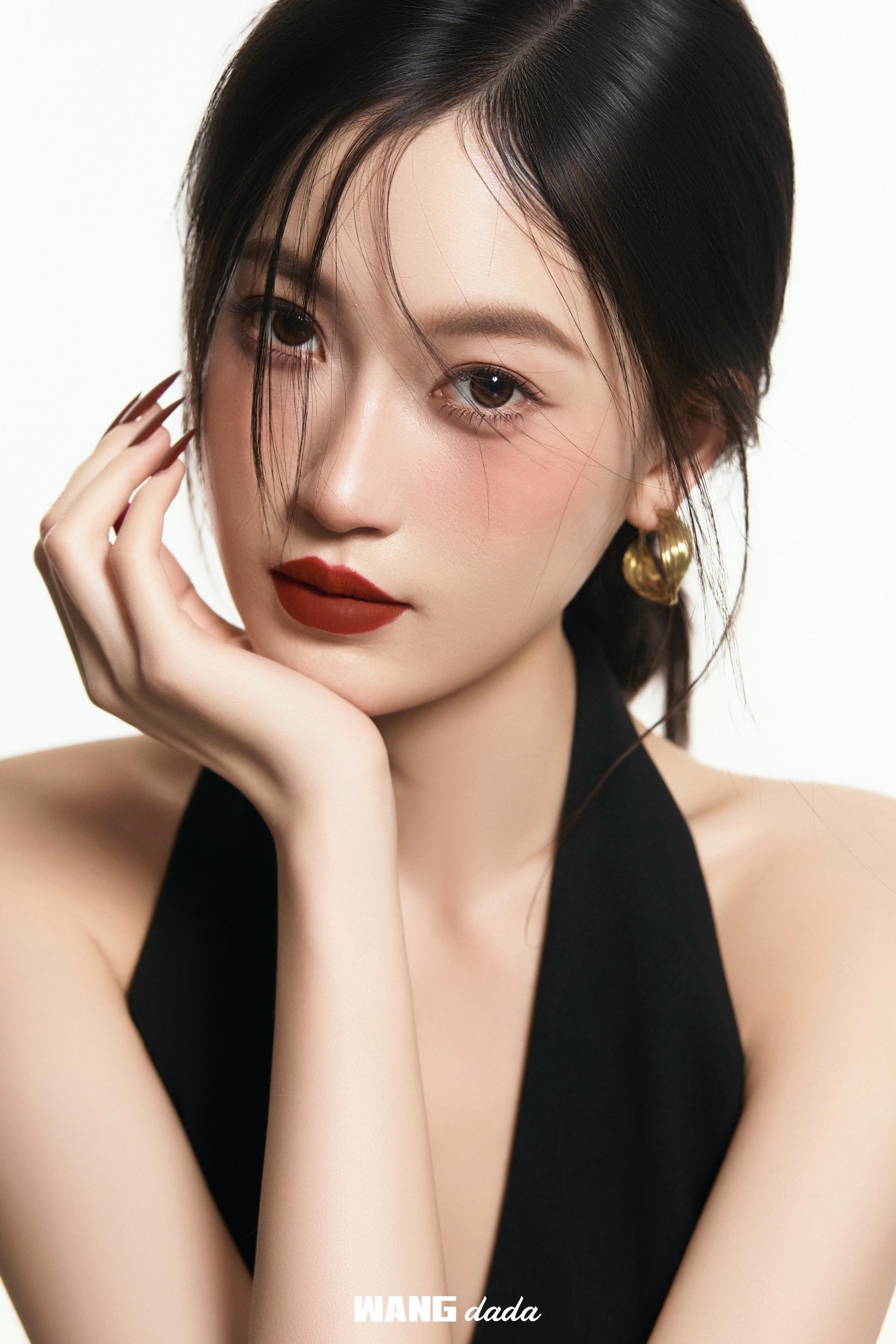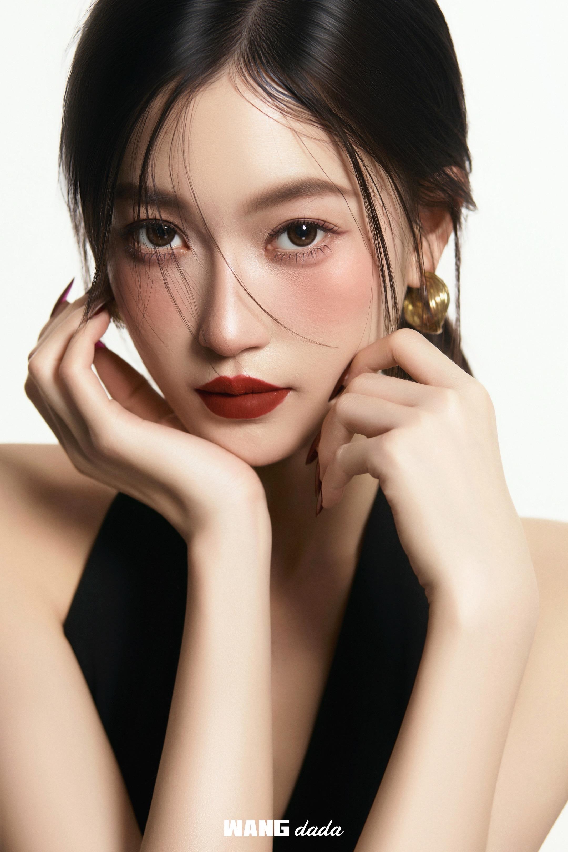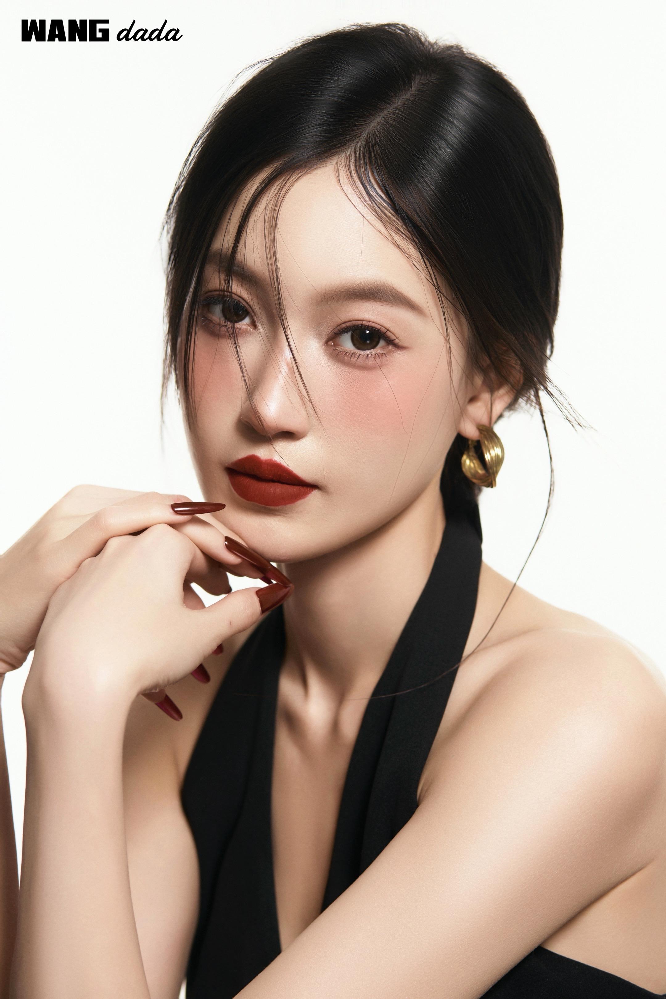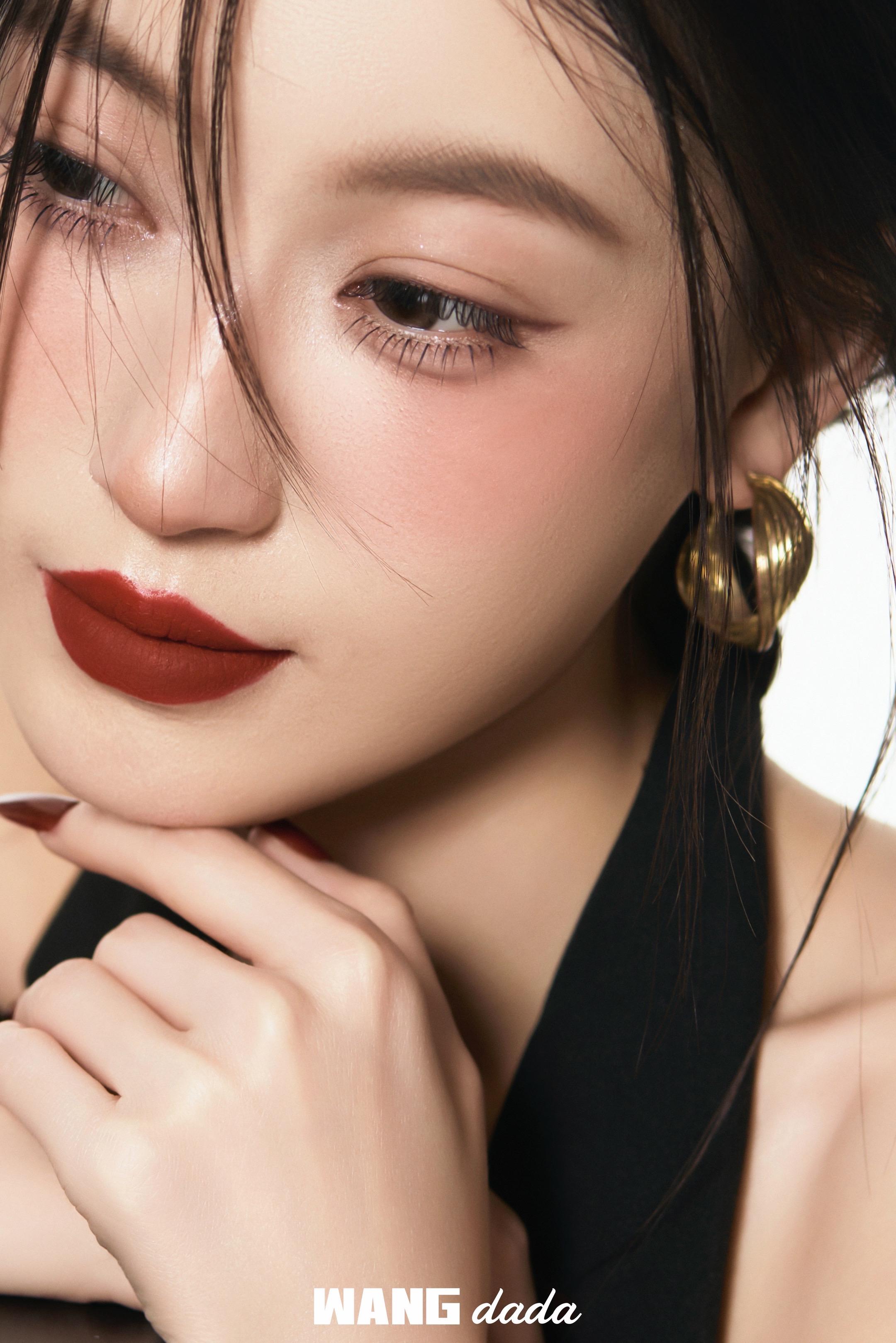 红衫映眸蕴雅致深棕的背景似揉了焦糖的柔雾,将红色衣装的明艳衬得恰到好处。那