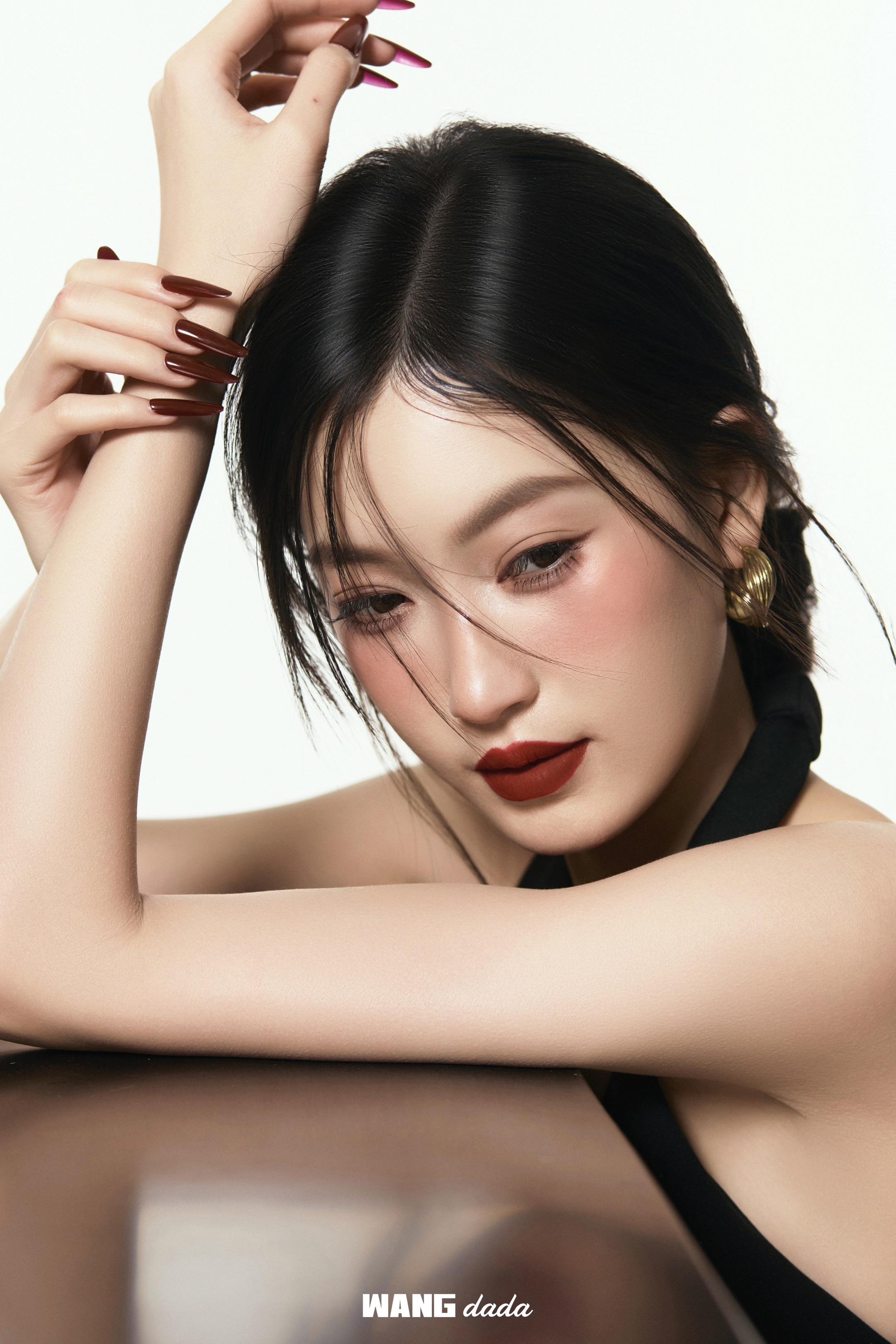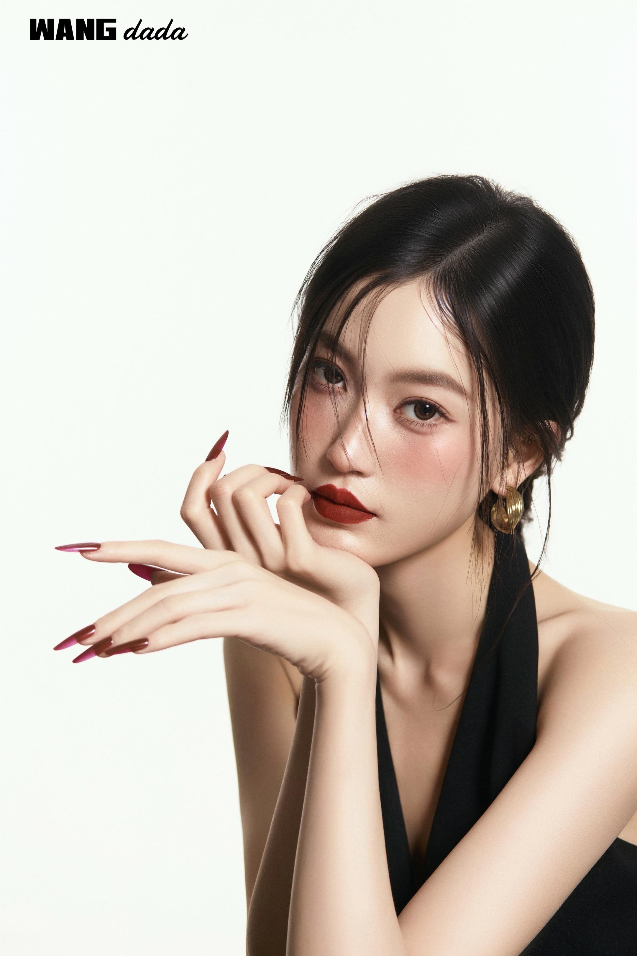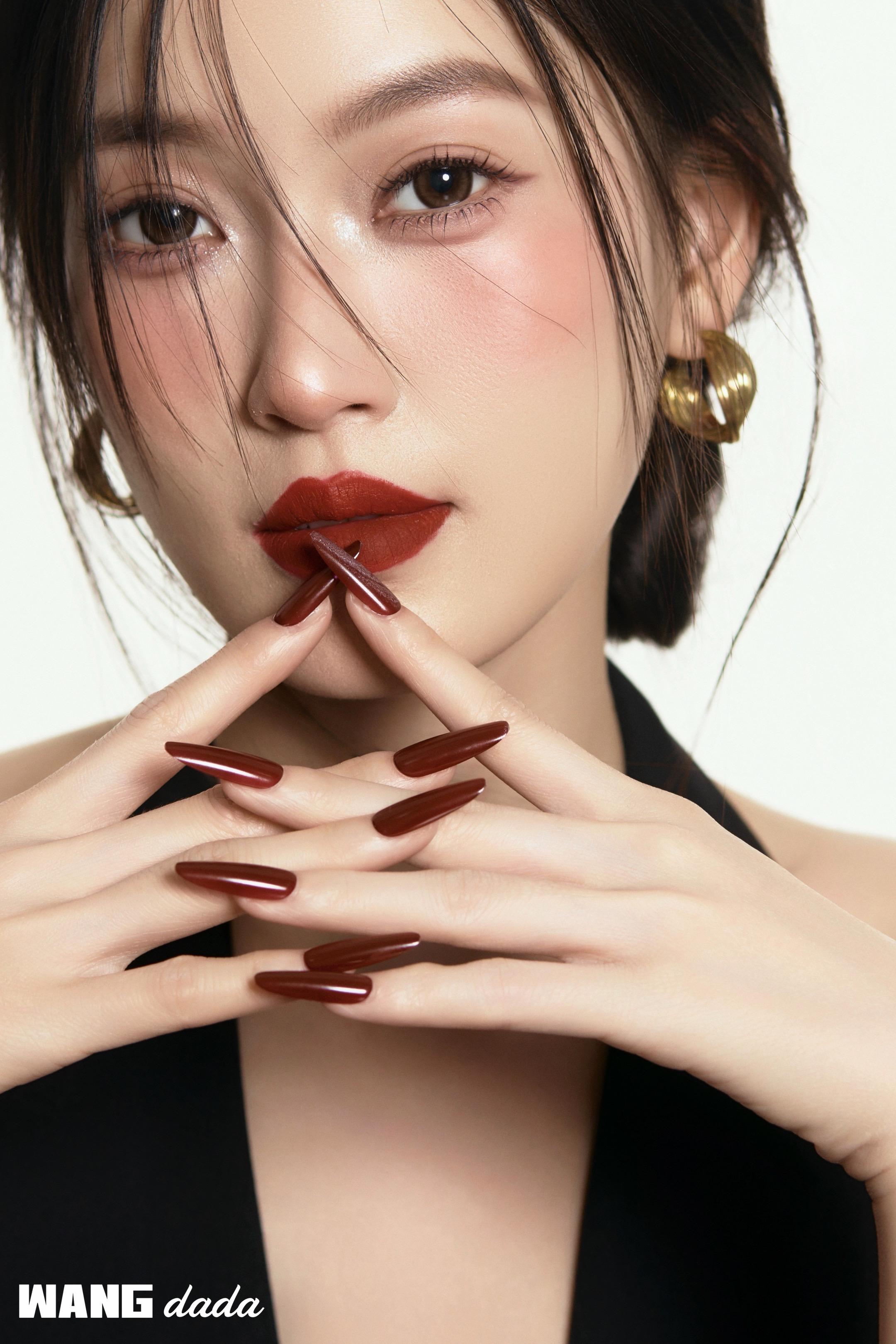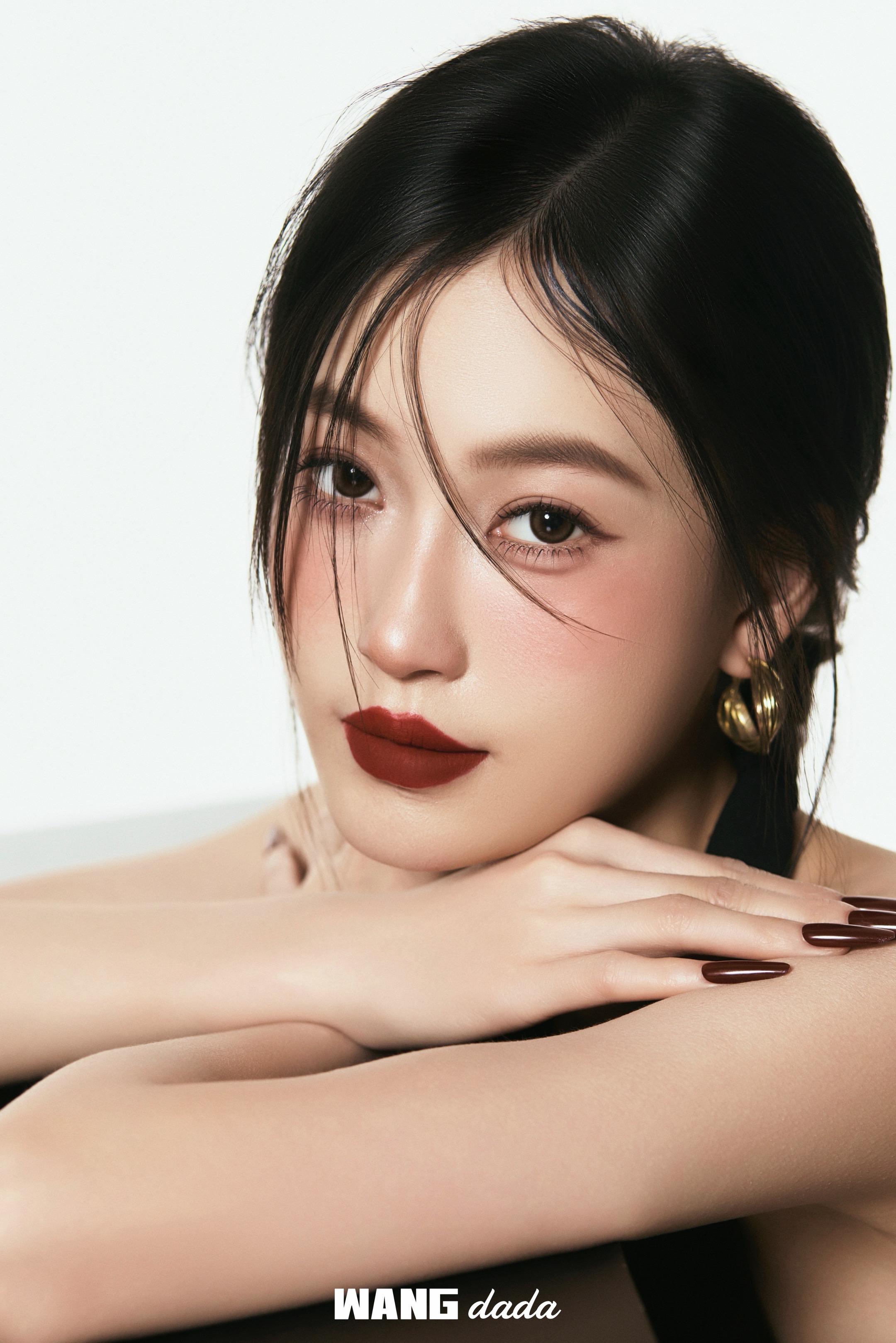 红衫映眸蕴雅致深棕的背景似揉了焦糖的柔雾,将红色衣装的明艳衬得恰到好处。那
