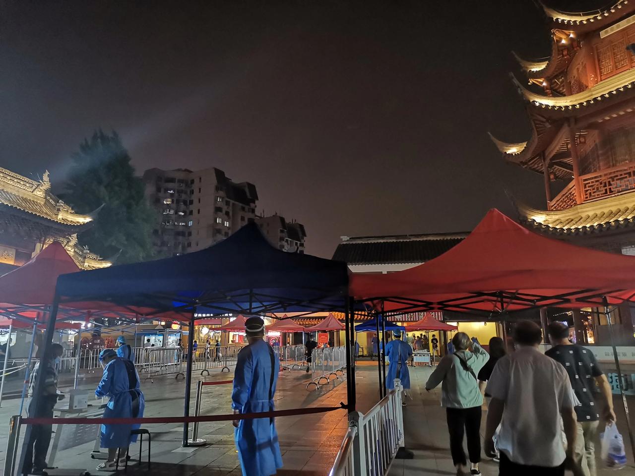 因为疫情,很久没到老街走走了,今天夜探七宝老街。 钟楼广场因为有很多市民在参加核酸大筛显得比较热闹,除此之外,整个老街显得冷冷清清,游客寥寥。除了几家店铺还在营业,近半的铺子都是关着的。 这个时间才七点多点,平日里是老街最热闹的时候。 这次疫情的影响太大了。