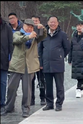 著名作家莫言近日再次现身天津大学,他戴着鸭舌帽,墨绿色羽绒服,灰色裤子,蓝色围脖,十分富太,他精神十足,和年轻人一样,走到哪里也都好奇的拿出手机拍照,他这黑色外壳的手机应该会是华为吧,一看就十分爱国。