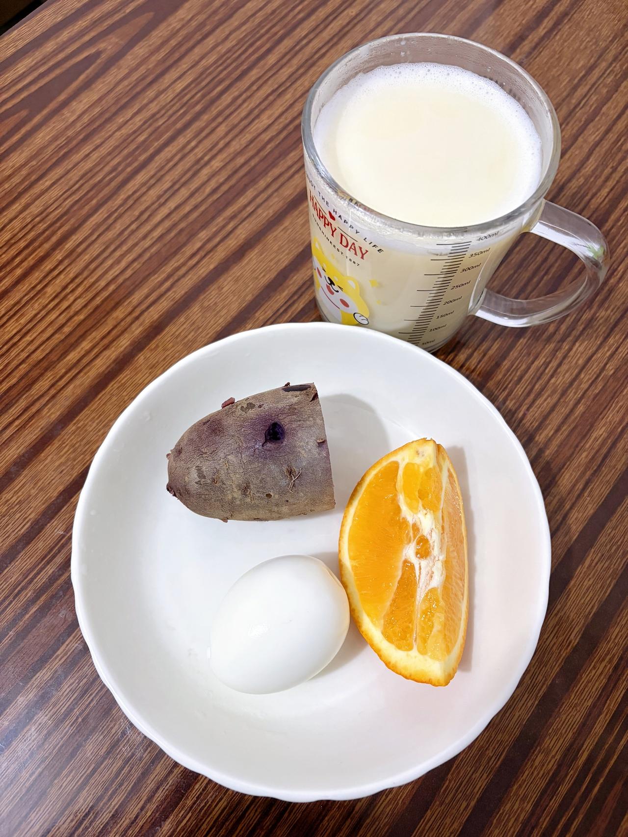 自律减脂健康餐 今日减脂早餐:紫薯+鸡蛋+橘子+豆浆 体重管理