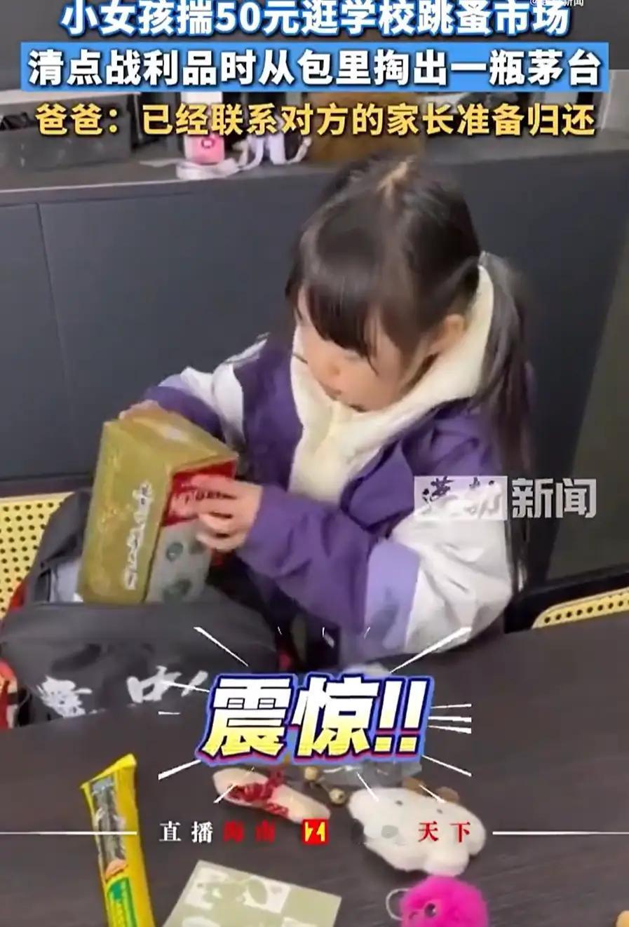 一场“跳蚤市场”的意外收获,背后藏着父女之间最暖的温情 笑死我了!这不,四川一小学女生为了参加学校的跳蚤市场,竟然朝父亲要了50块钱。起初,爸爸还以为女儿只是想买点小玩意儿,没想到她带回来两个挂饰,似乎还觉得被同学“骗”了,心里有点小失落。谁料,故事的转折比电影还精彩。 就在父亲一脸疑惑时,女儿突然从书包里掏出一瓶茅台!这一幕,瞬间让在场的所有人都愣住了。原来,这位小学生的“战利品”竟然是一瓶酒!父亲一看,心里五味杂陈,惊喜中夹杂着疑惑。原来,这瓶酒竟然是她在跳蚤市场上偶然遇到的“意外之财”。 事情的真相让人忍俊不禁:原来,这位女儿在跳蚤市场上,看到一位大叔正在出售一瓶茅台,出于好奇,她便用仅有的零用钱买了下来。她的天真和纯粹,让人心生敬意——在这个物欲横流的时代,一个小女孩用自己的方式,表达了对“珍贵”的理解。 父亲见状,既感动又心疼,连忙联系对方家长,把酒归还。这个细节,折射出家庭中最真实的温情:孩子的纯真,父母的责任,人与人之间的信任与理解。这一幕,仿佛告诉我们:真正的财富,不一定是物质上的,而是那份纯粹的善良和信任。 这件事在网络上传开后,瞬间引发了热烈的讨论。有人感叹孩子的天真可爱,有人则被父母的责任感所打动。更有人开始反思:在这个充满诱惑的社会,如何培养孩子的善良和诚信?而这份“意外之财”,或许正是最珍贵的教育礼物。 故事告诉我们,生活中最美好的,往往是那些不经意间的小细节。它们让我们看见人性中最善良、最纯粹的一面,也提醒我们:在快节奏的生活中,别忘了用心去感受那份简单而真挚的温暖。 你是否也曾遇到过类似的“意外收获”?又或者,你在生活中遇到过那些让你感动到落泪的瞬间?快来评论区分享你的故事吧!让我们一起,用善良和温暖,点亮这个世界。跳蚤市场 童趣跳蚤市场 幼儿摆摊跳蚤