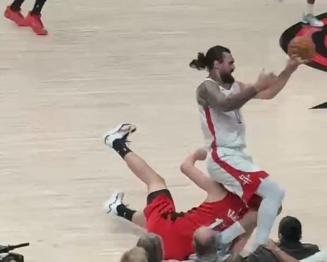 这太疼了!杨瀚森被亚当斯一屁股坐头上了~ 两人抢地板球的时候,杨瀚森飞扑断球与亚当斯齐齐摔倒!杨瀚森脑袋重重砸地,已经很疼了,结果亚当斯倒地还坐他脑袋上了,这看着就疼。 在比赛拼劲儿上,杨瀚森是完全没问题的,现在几次和亚当斯的对抗,就是下盘和重心不稳,核心力量不足,什么时候练到有亚当斯的8成对抗了,那杨瀚森就能站稳NBA,至少打一个合格的轮换了。