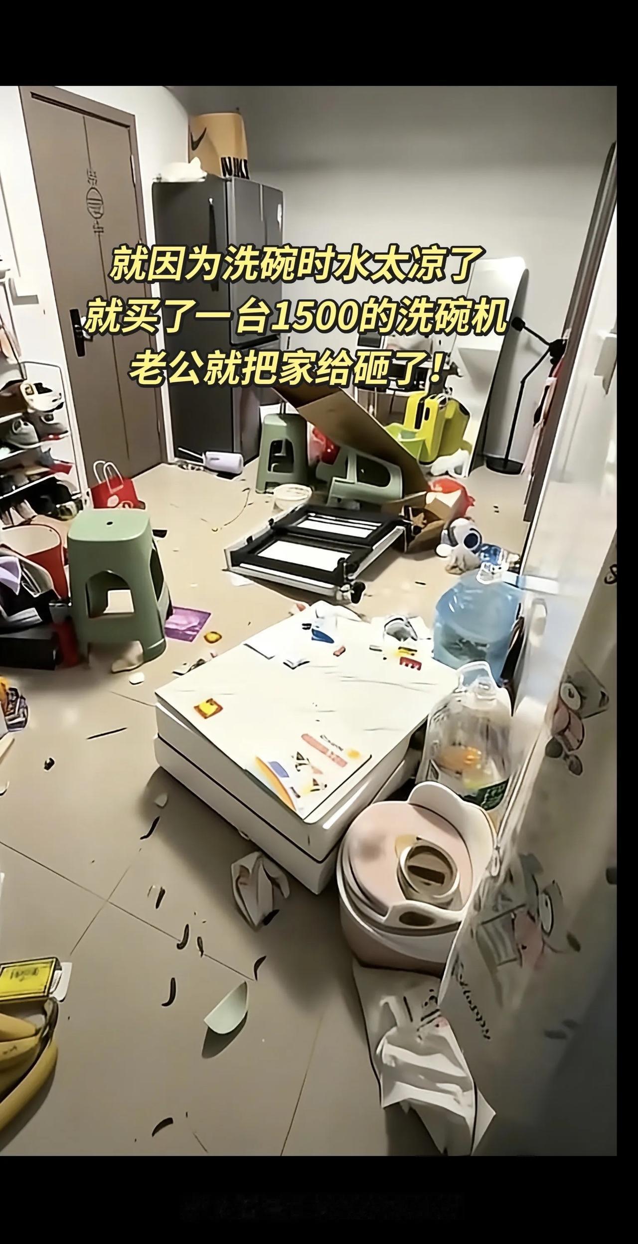 本来我也觉得一个洗碗机不至于 ,也觉得是不是女的没赚钱,所以权利不对等问题,但是,大家要不去看看原视频。 家庭大件购买没有去和老公商量已经很不尊重了,女的自己做美甲 吃海底捞,那女的没工作,两个孩子,家庭负债20万,男的工资一个月一万,扣掉房租算8000,要不要还负债?一个月还5000,20万得还4年,相当于他们一家人一个月只有3000块可以以用,3000块直接拿一半1500买洗碗机,还剩1500块可以用,这个月不用活了,而且是出租屋不是自己家,厨房都没地方放,山男的能砸家说明负债压得最后一根稻草了,洗碗机不算啥,但是请看清情况再说,两个孩子天呐,只能说没钱真的别生孩子,1500就能让一个家鸡飞狗跳。女子买洗碗机老公嫌贵把家砸了你咋看