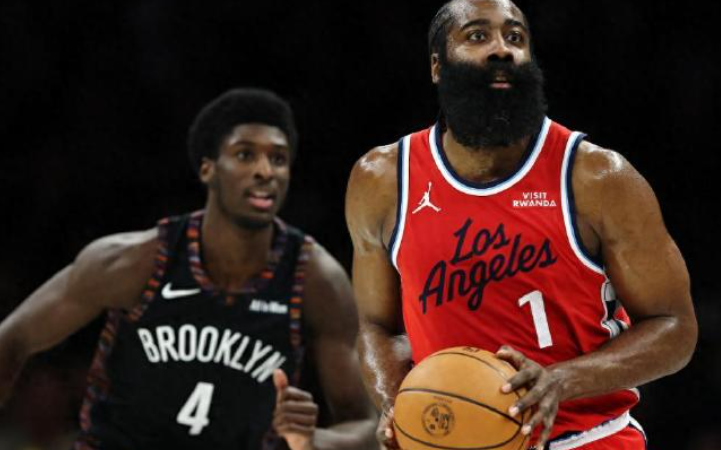 篮网主场巴克莱中心的灯光下,哈登走向球员通道,他刚刚在快船队服下用13投10中的高效表现为球队带来胜利。
